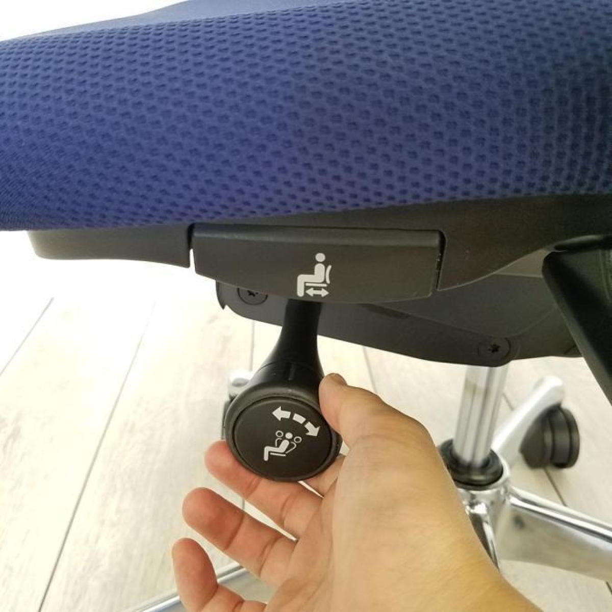 【在庫入替セール】【10脚入荷】流れるような美しいフォルム「サブリナ」入荷!中古 オフィスチェア 高級チェア メッシュチェア テレワーク 在宅ワーク オカムラ ダークブルー アジャストアーム 前傾 ハンガー付き- 東大阪店