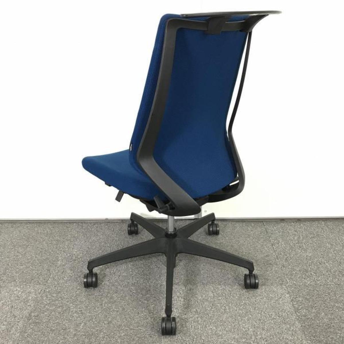【在庫入替セール】コクヨ デュオラ 肘無しモデル クッションタイプ ブルー×ブラックフレームの定番のカラーリング コートハンガー付き ※背もたれに破れ有り【T9】