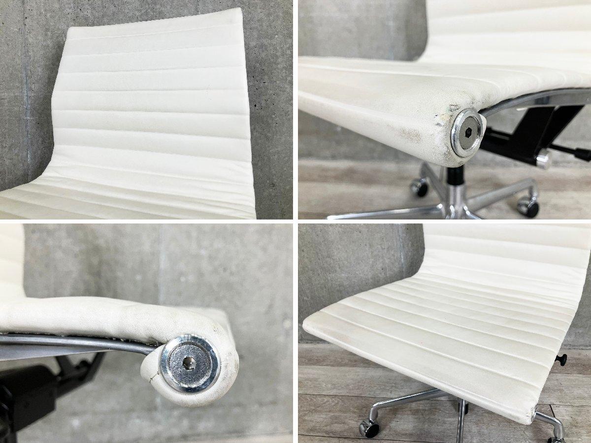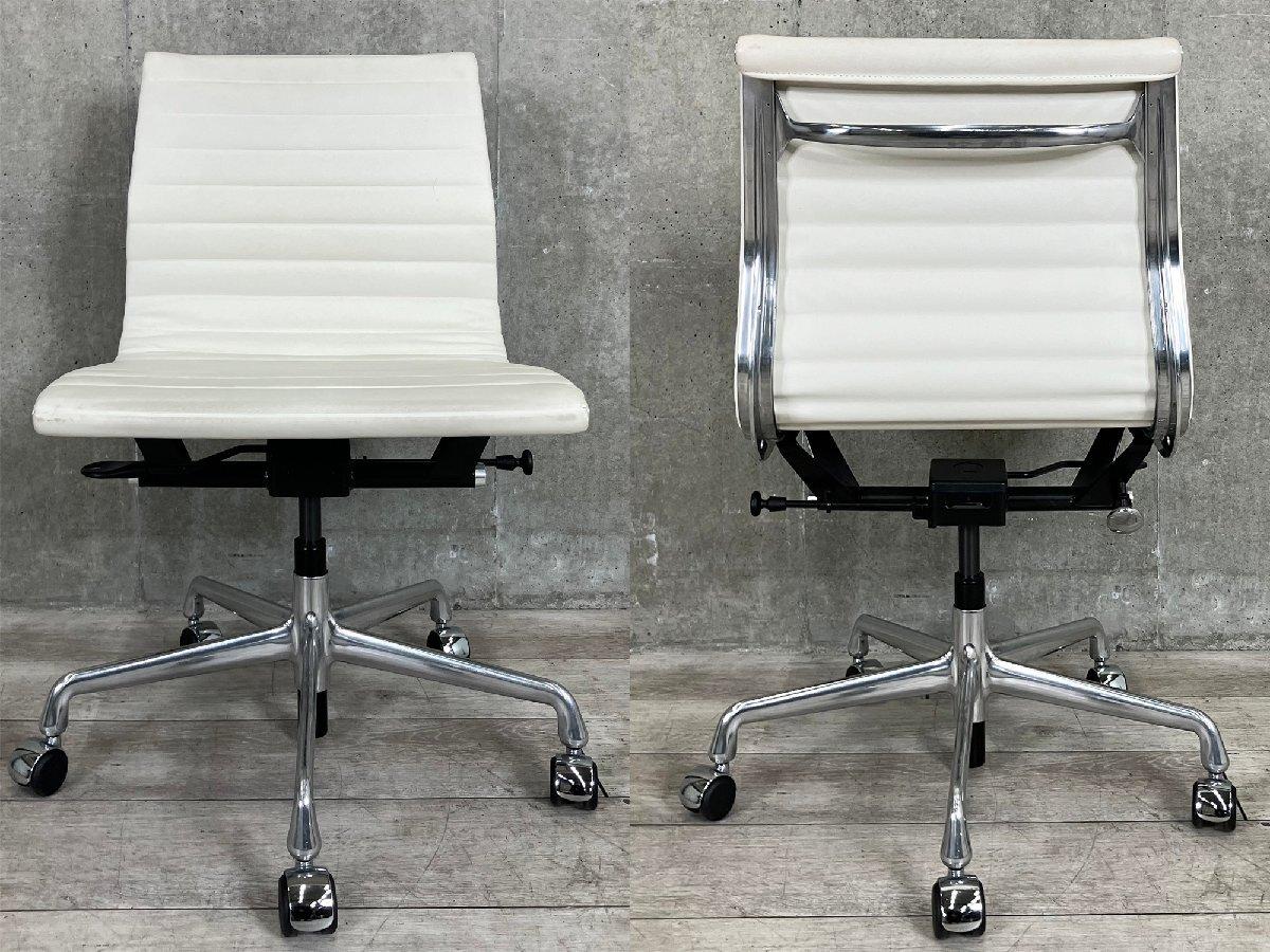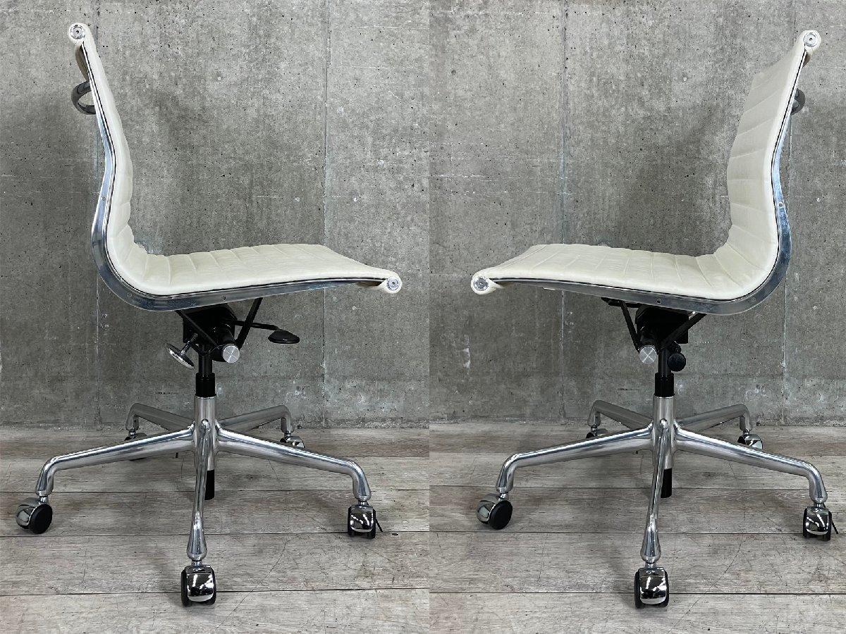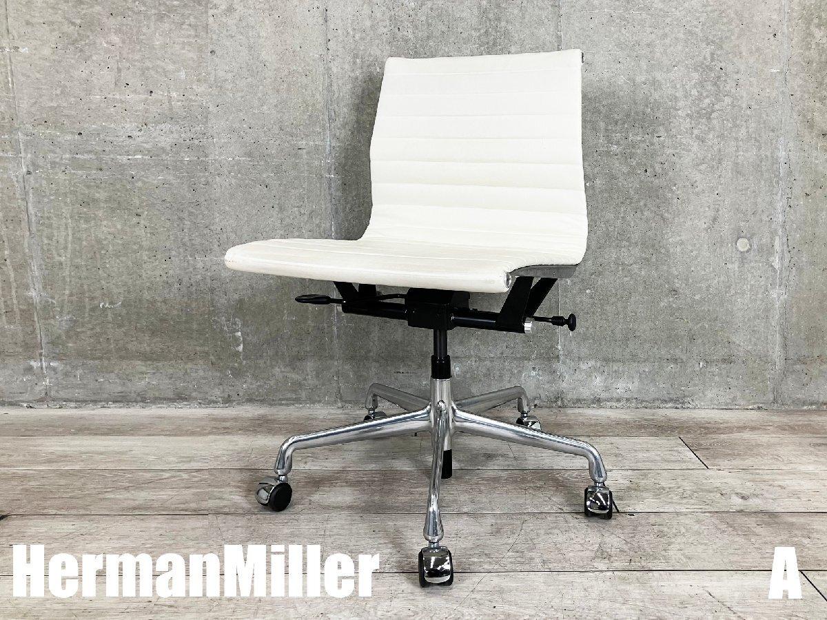 A)HermanMiller/ハーマンミラー イームズ アルミナムチェア サイドチェア 本革 ガス圧昇降機能 ホワイト本革- デザイナーズ家具センター