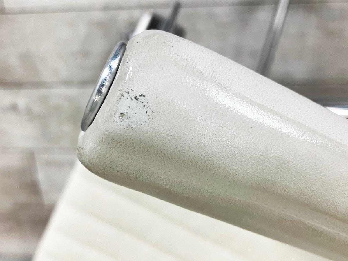 - かなり強い濃い黄ばみ・変色が商品全体にある。(例、座面・背もたれ、脚部等にある。)