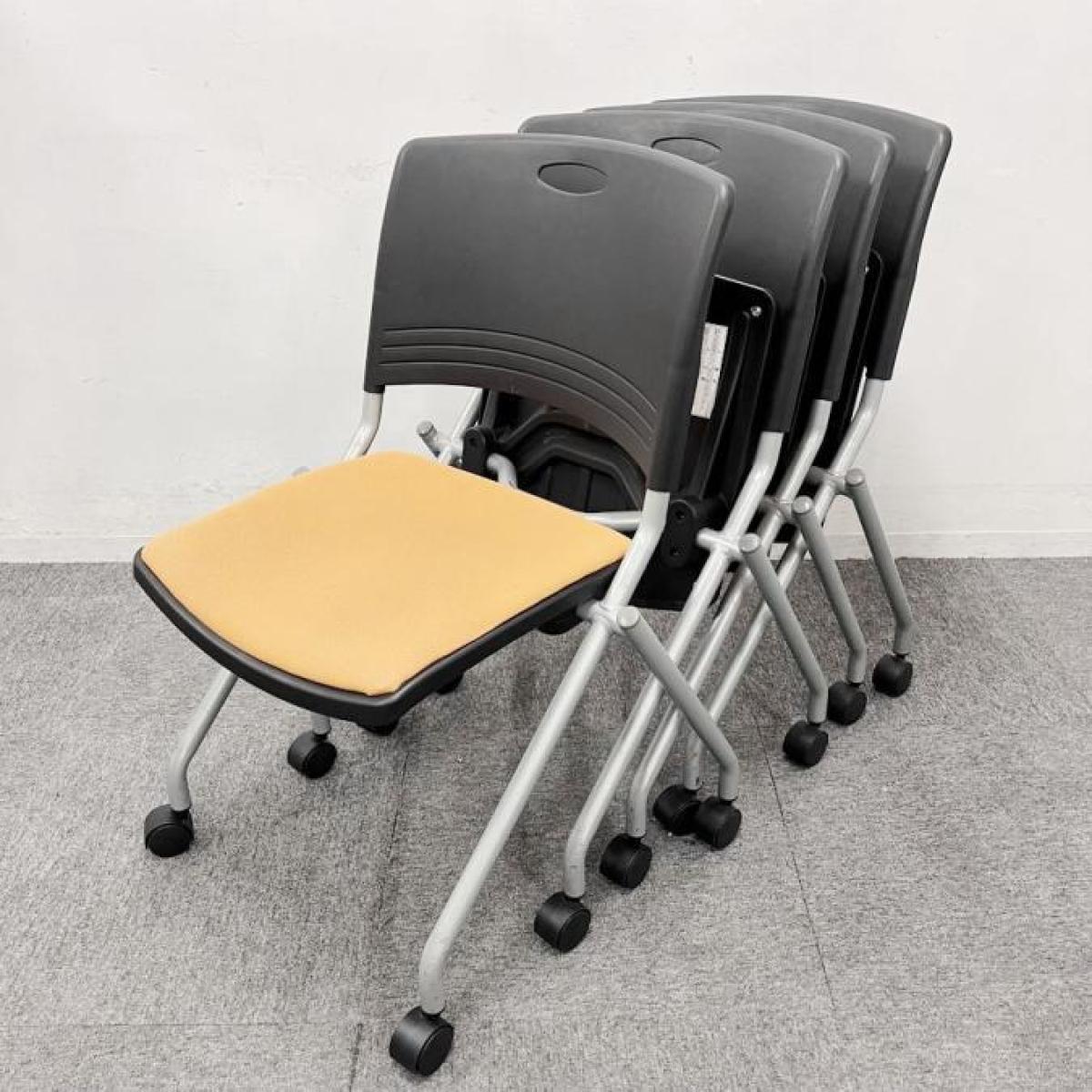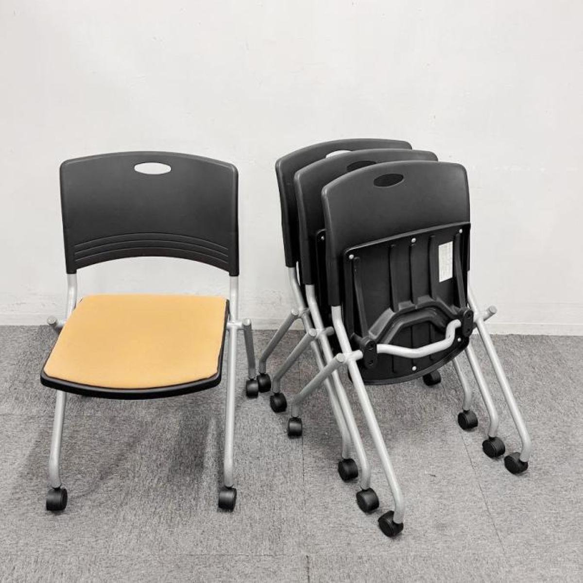 【在庫入替セール!】【オレンジ色のネスティングチェアが入荷!】ネスティングチェア 折り畳みチェア 会議用 休憩室用 オレンジ ロット商品- 大阪・堺店