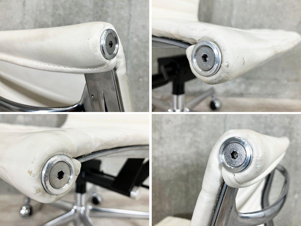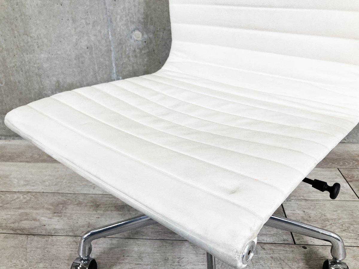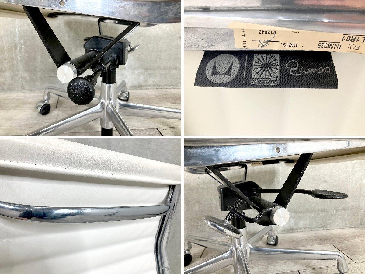 D)HermanMiller/ハーマンミラー イームズ アルミナムチェア サイドチェア 本革 ガス圧昇降機能 ホワイト本革- デザイナーズ家具センター