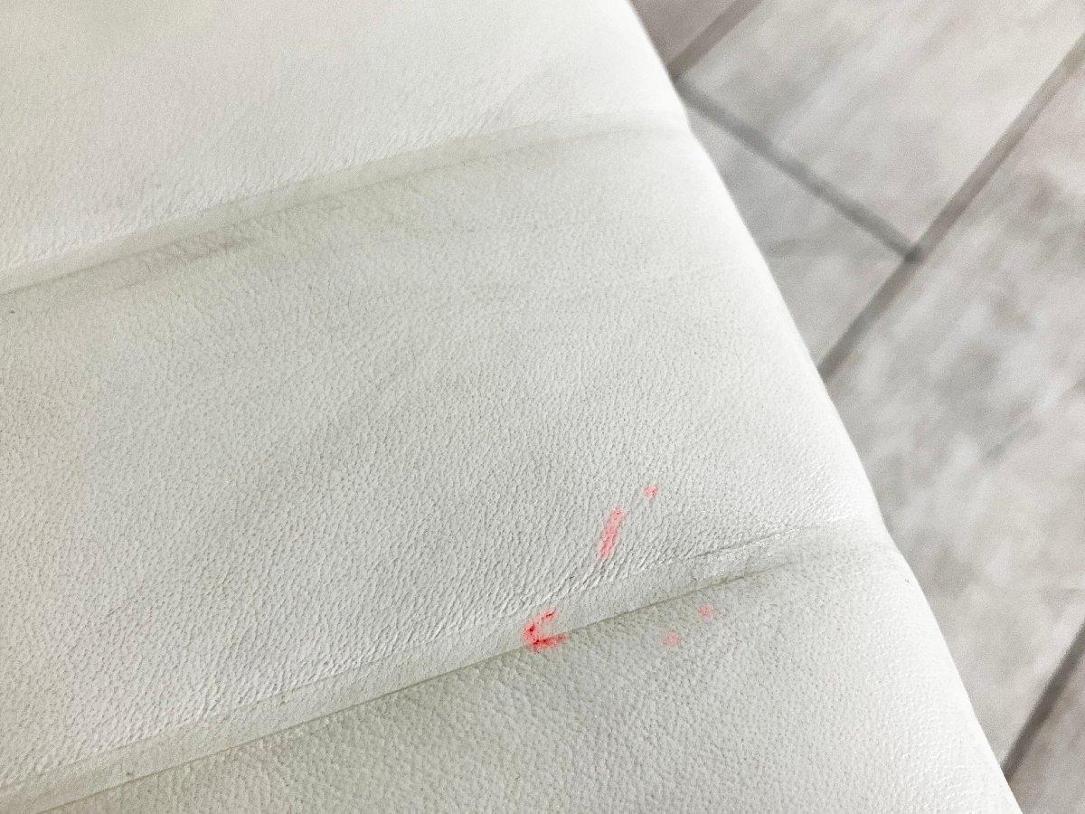 - あり黄ばみ・変色が広い範囲にうっすらある、または濃い黄ばみ・変色が一部ある。(例、座面・背もたれ、脚部等にある。)