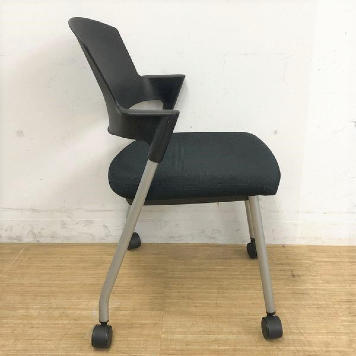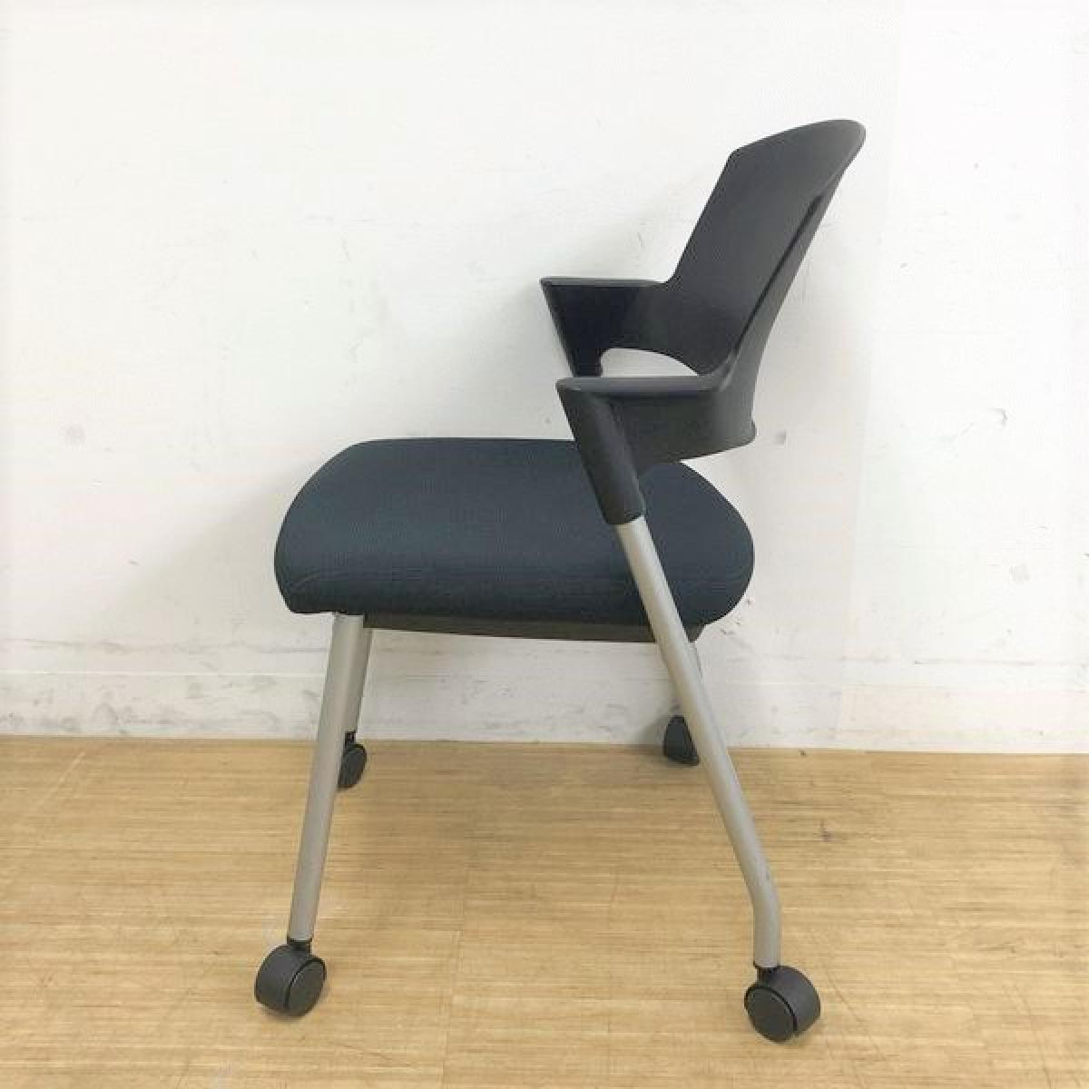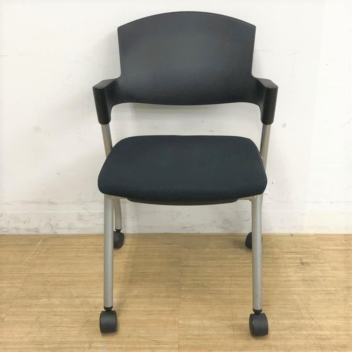 【6/16・8脚入荷予定!】【シンプルスマートなスタッキングチェア!分厚いクッションで長時間でも快適な座り心地!】■コクヨ製 プロッティ スタッキングチェア 肘付ミーティングチェア ■固定肘 ■キャスター付 ■ブラック ■背面樹脂 オフィスバスターズ梅田本店