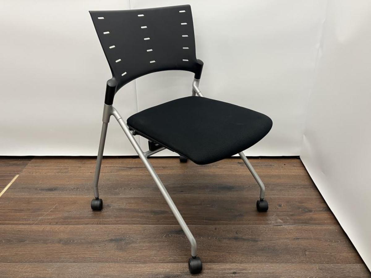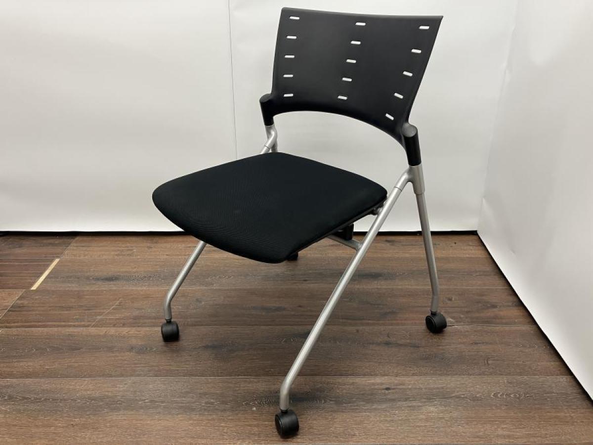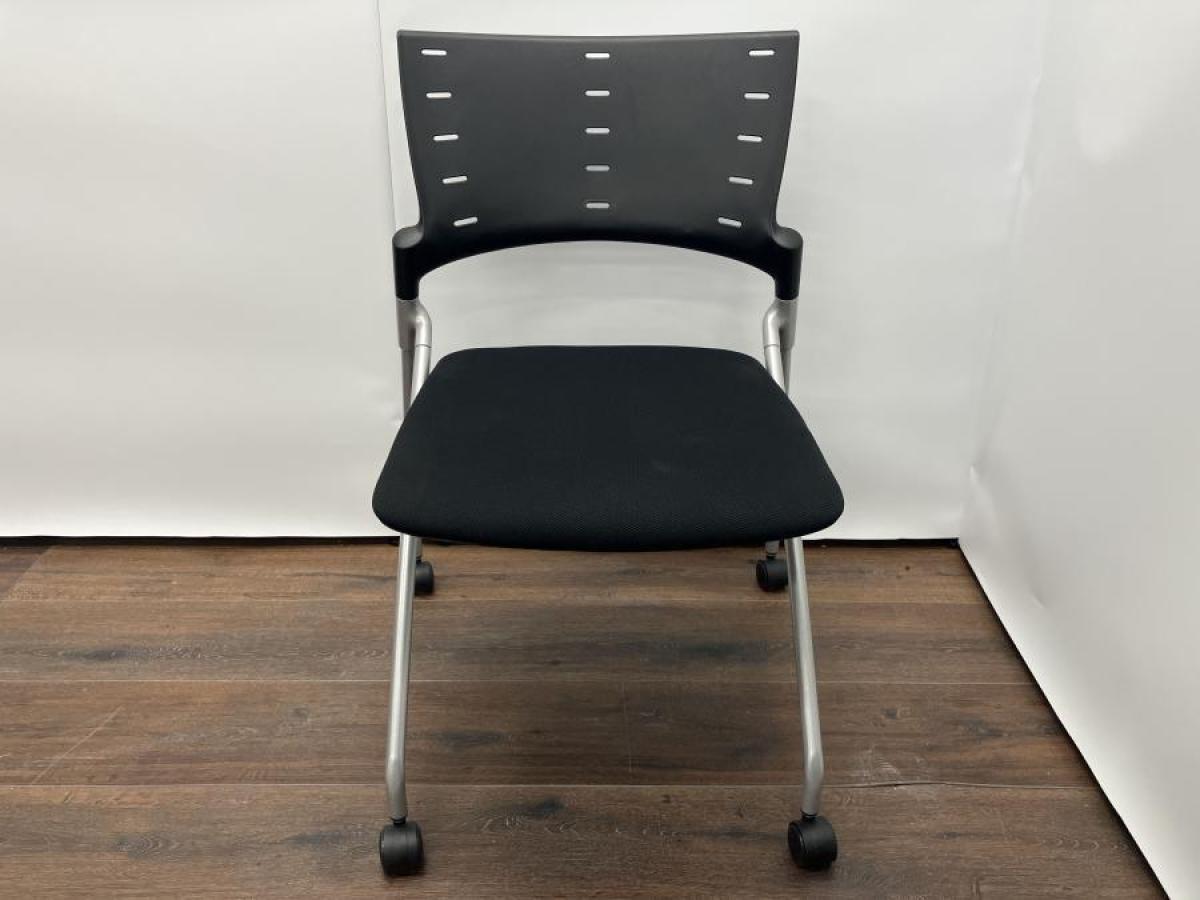 【関西倉庫在庫品】【平行に重ねて省スペース!使い勝手抜群のミーティングチェア!】■イトーキ マノスシリーズ ネスティングチェア 座ブラック 背ホワイト キャスター付【ITOKI Manos】【W】