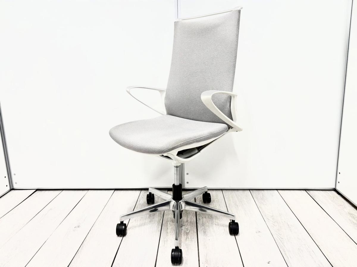 スタイリッシュなデザインと確かな座り心地!会議室やモダンなオフィスの執務用としてもおすすめの人気チェア! ■オカムラ/モード(mode)/ライトグレー クロス(ミックス) ホワイトボディ- 立川・八王子店