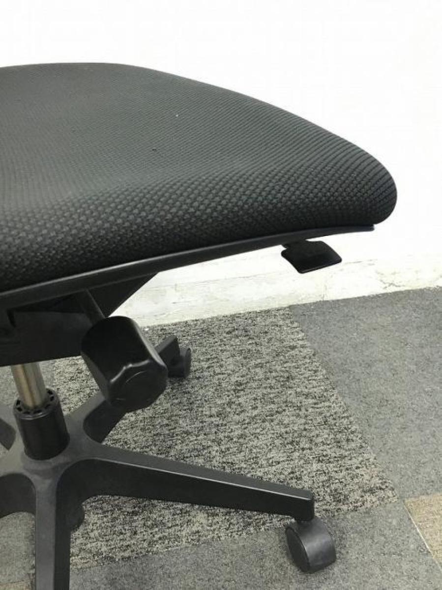 例えば、座面は、イトーキ独自の"ベンディングシート"という機構により、クッション、インターシェル、空洞という三層構造になっています。 この真ん中に挟まっているインナーシェルが、着座時の姿勢に合わせて体重を分散してくれるので、どんな姿勢でも体になじみ、疲労を軽減してくれます。 さらに、座面は前後に4センチほど奥行きを調整でき、前傾姿勢で座りたい、深く腰掛けたい、膝裏を圧迫されたくないなど、個人の好みに合った快適さにカスタマイズが可能となっています。