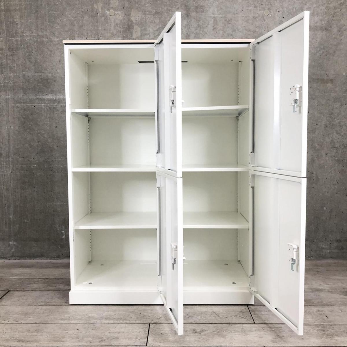 【ナチュラル調の木目天板付きのおしゃれなパーソナルロッカー!】■オカムラ(okamura) パーソナルロッカー4人用 H1270㎜ ■本体ホワイト ナチュラル天板付き ■ダイヤル錠 ■投函口なし- 春日部・越谷店