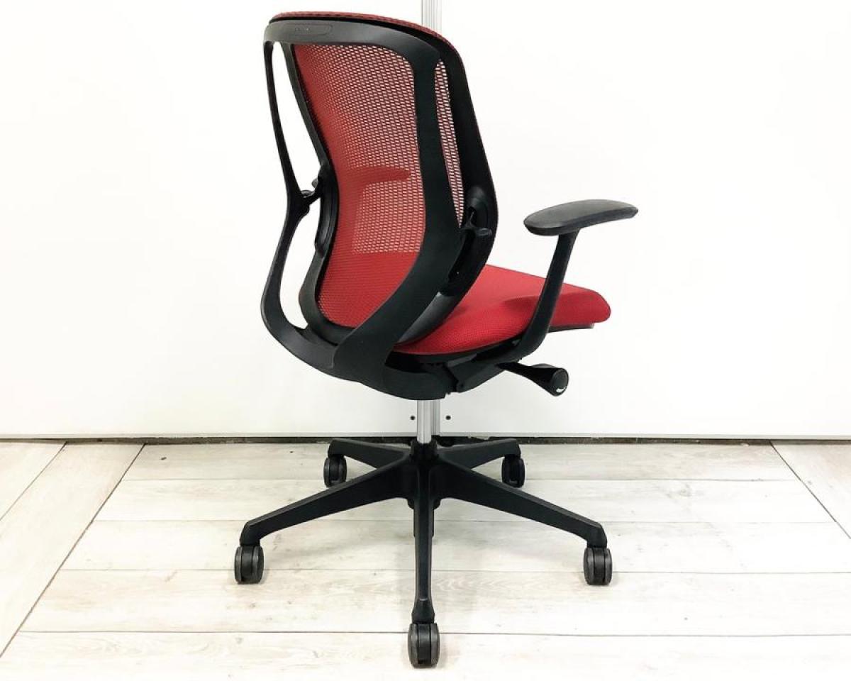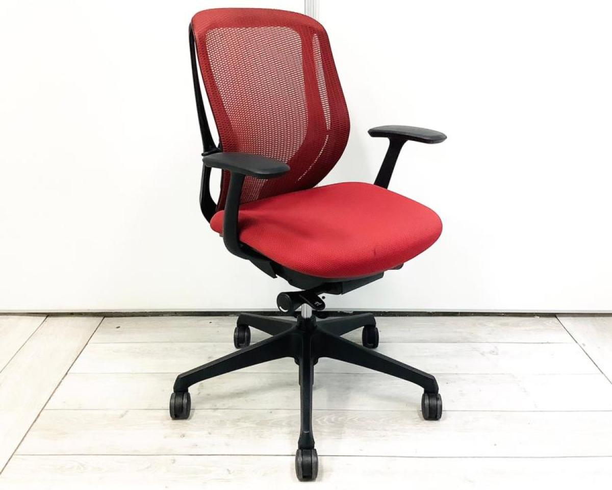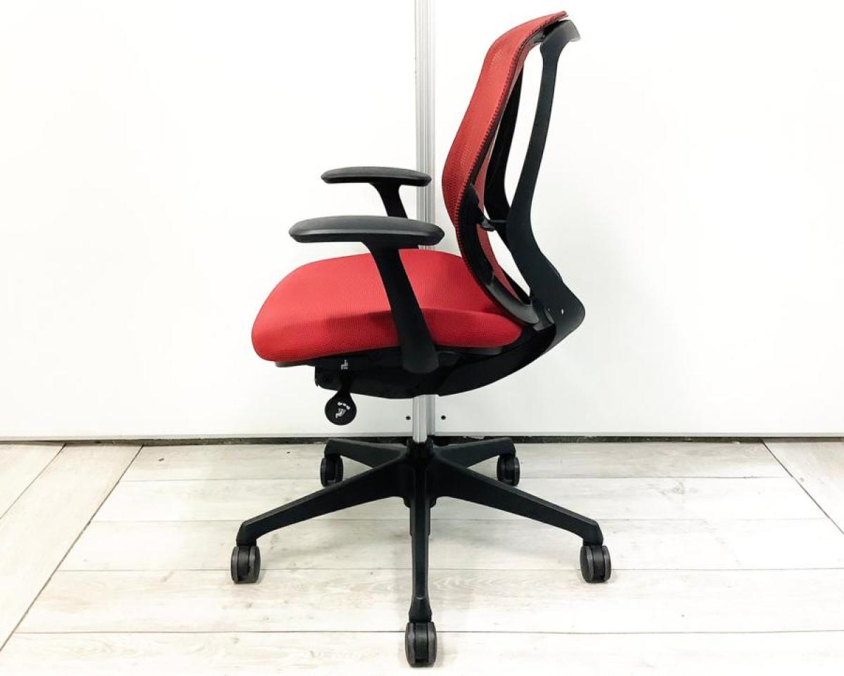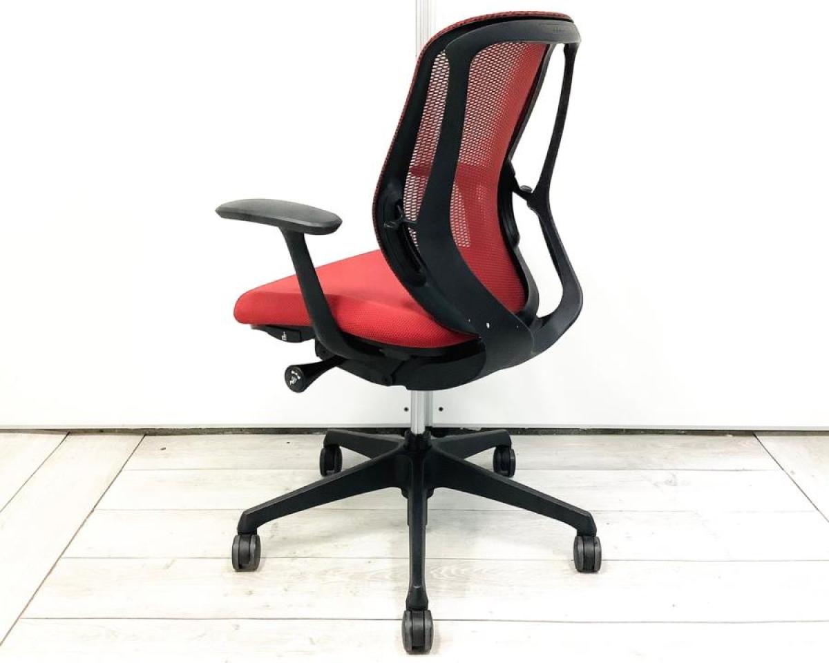 【包み込まれるような快適な座り心地です!】■オカムラ シルフィーチェア 肘付 レッド ■背のカーブを変えられる!新感覚のオフィスシーティング!★サーキュラーバリューCO2削減量の算出について