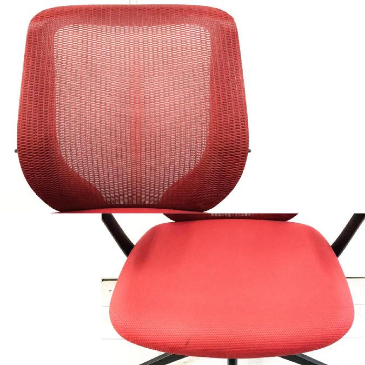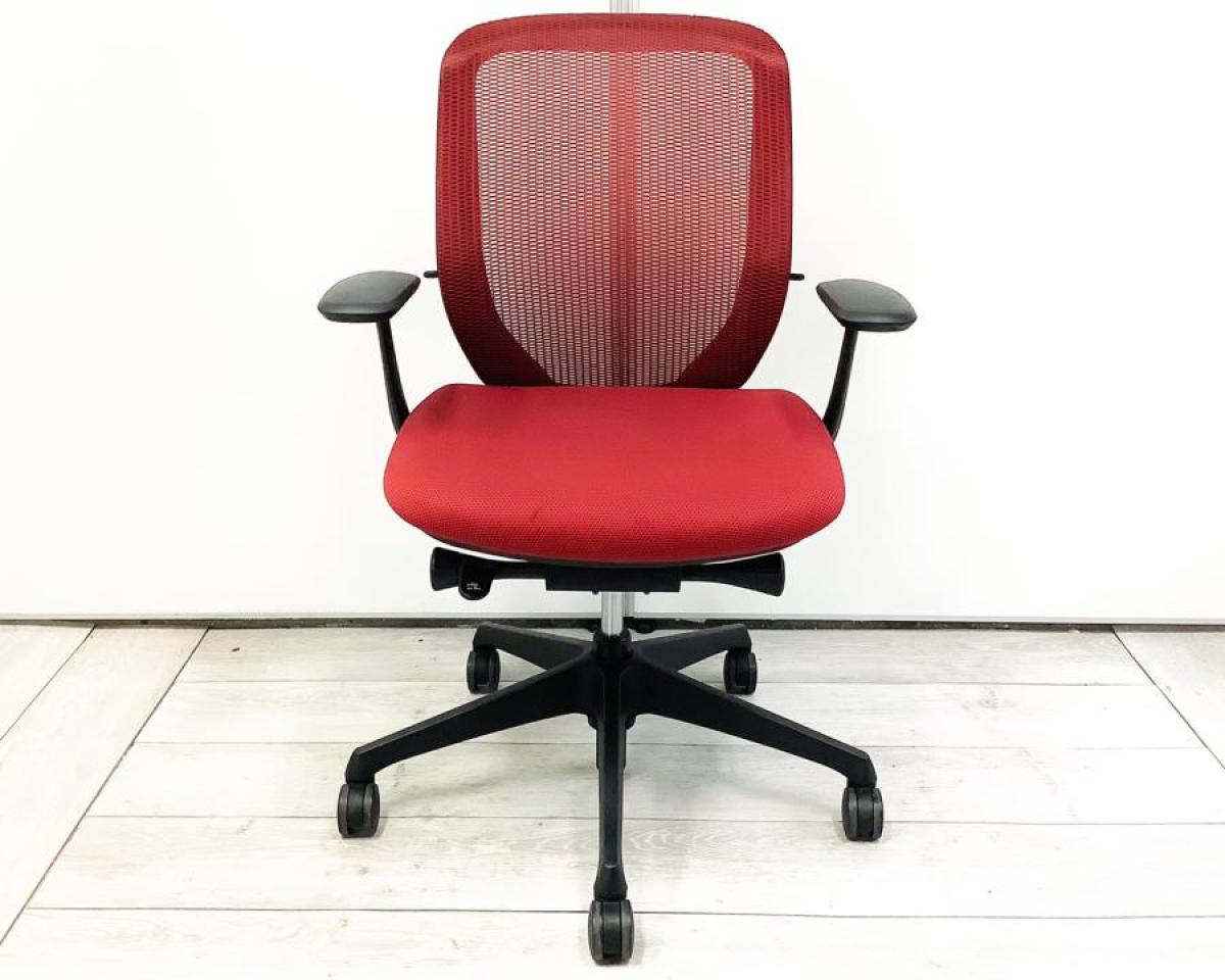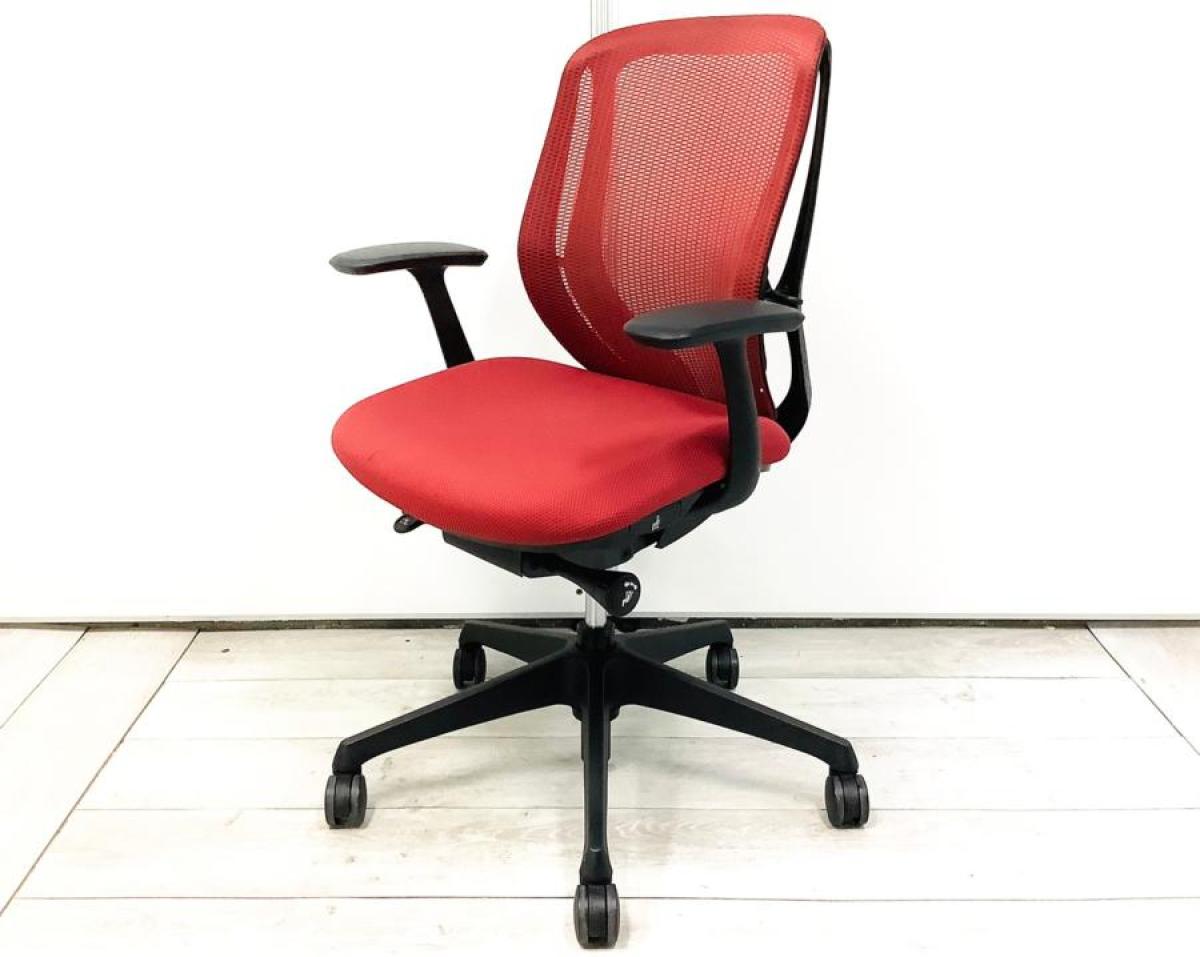 【包み込まれるような快適な座り心地です!】■オカムラ シルフィーチェア 肘付 レッド ■背のカーブを変えられる!新感覚のオフィスシーティング!★サーキュラーバリューCO2削減量の算出について