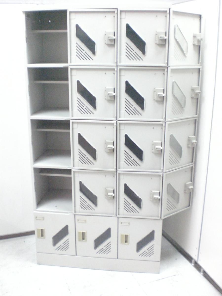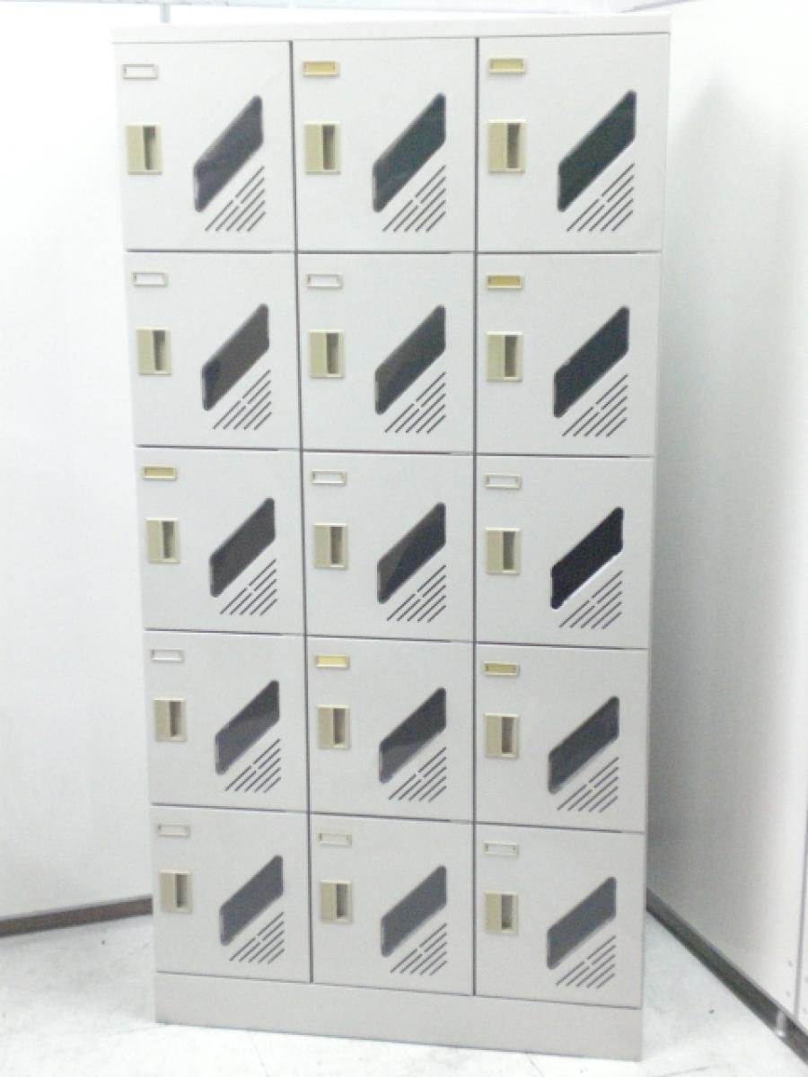 【入荷の珍しい15人用シューズボックス! 小窓付き!】■オカムラ(okamura) 15人用 3列×5段 W900×D400 ■グレー ■鍵穴なし- つくば店