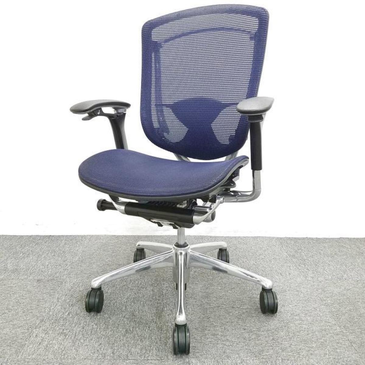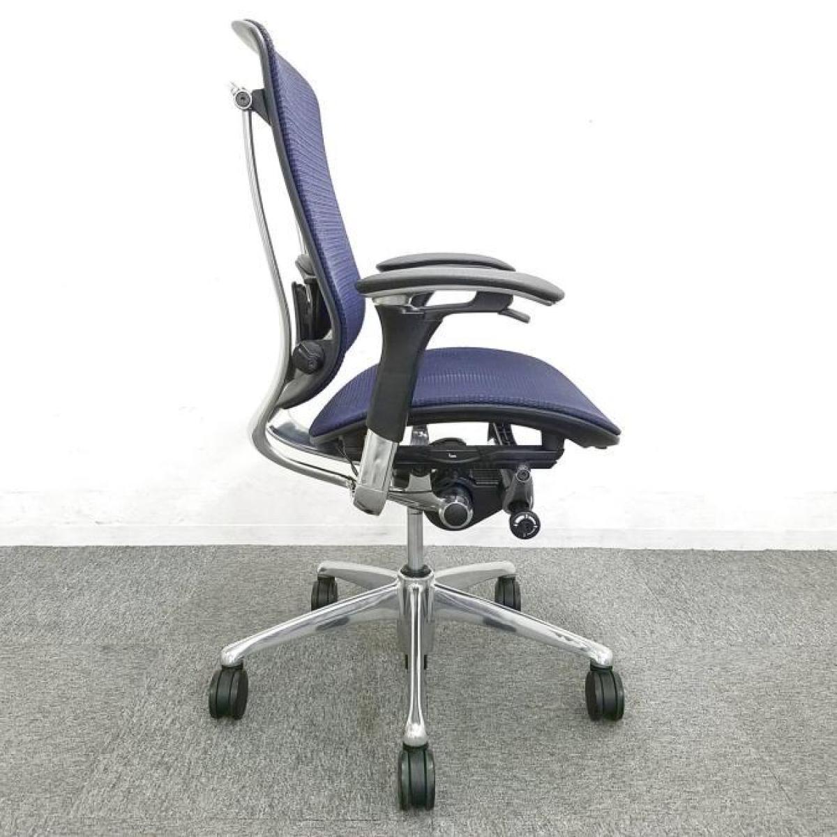 【オカムラ製の最高級チェアが残り1脚限りです!!】オフィスバスターズ 東大阪店 オカムラ製 コンテッサ シリーズ ダークブルー アジャストアーム※可動肘 背/座面メッシュ ランバー 世界で認められた革新的タスクチェア!人間工学に基づいた快適な座り心地を実現! 肘付きハイバックチェア!! 中古 外部倉庫品