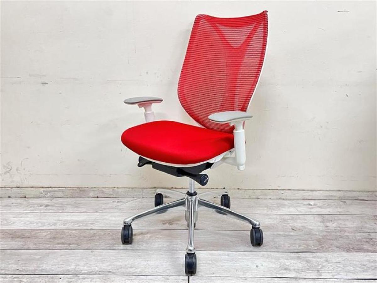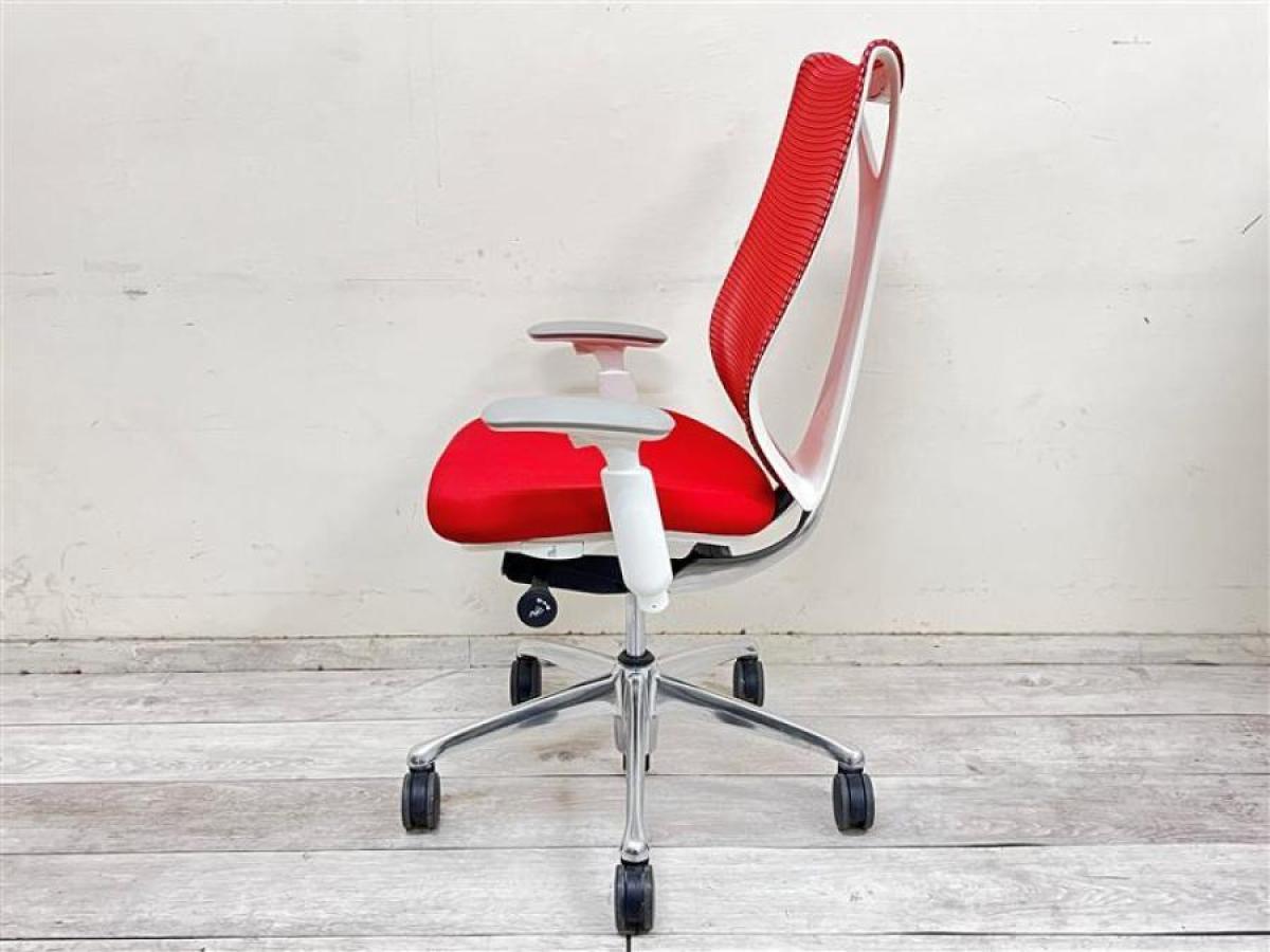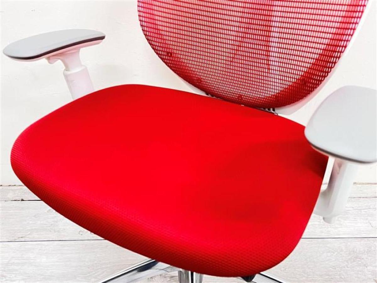 【在庫入替セール品!】【リングフレームとメッシュが背中をやさしく受け止める・最高級メッシュチェア!】 ■オカムラ(okamura)製 サブリナ (Sabrina) ハイバック 肘付き ■可動肘 背面メッシュ レッド- 池袋店