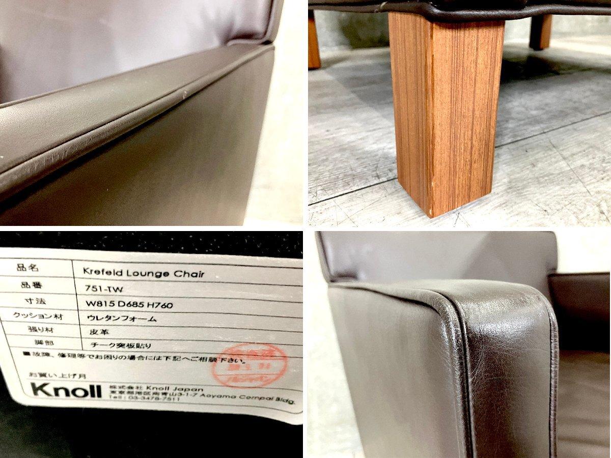 B)knoll /ノール クレフェルド ラウンジチェア Mies van der Rohe / ミースファンデルローエ 本革 ブラウン シングルソファ- デザイナーズ家具センター
