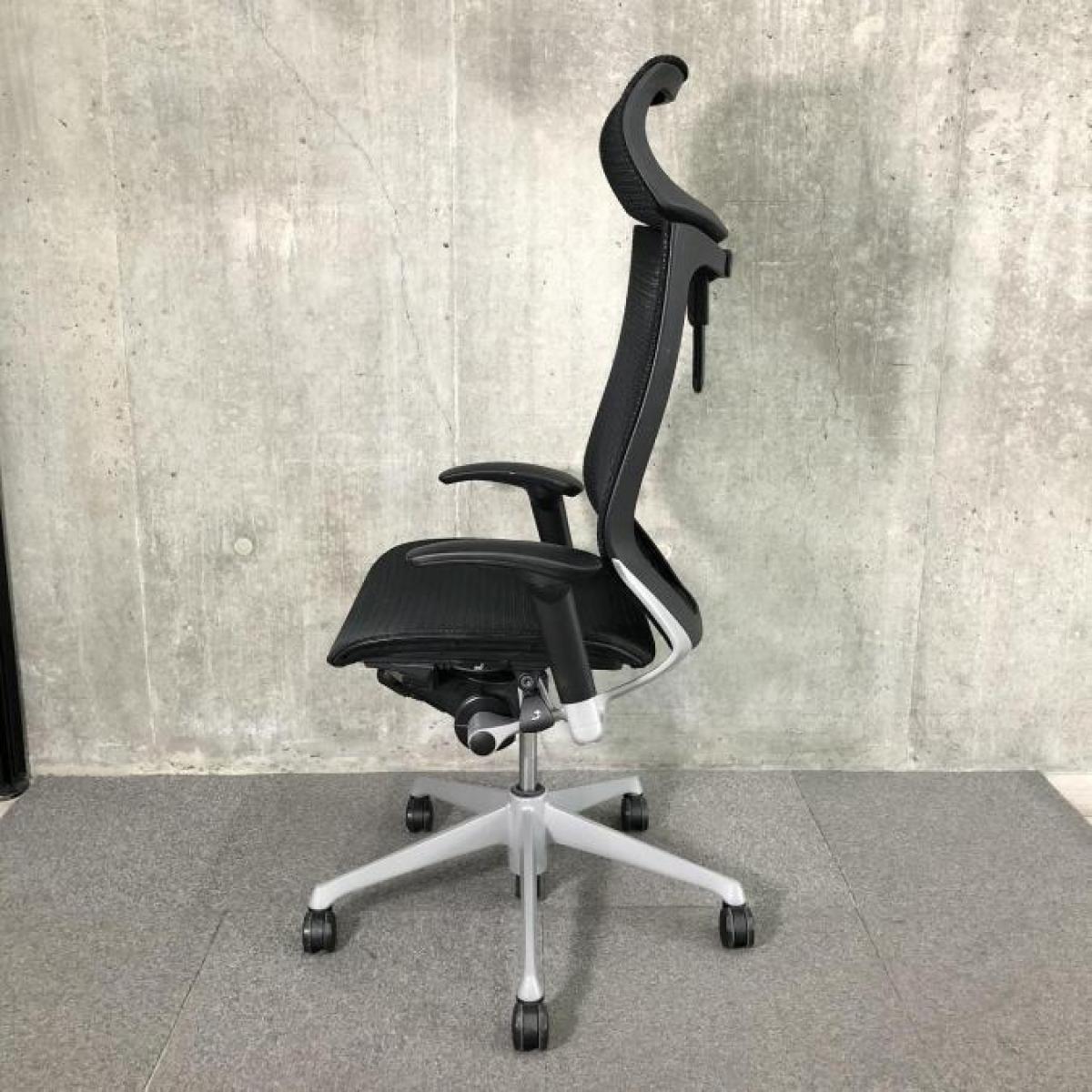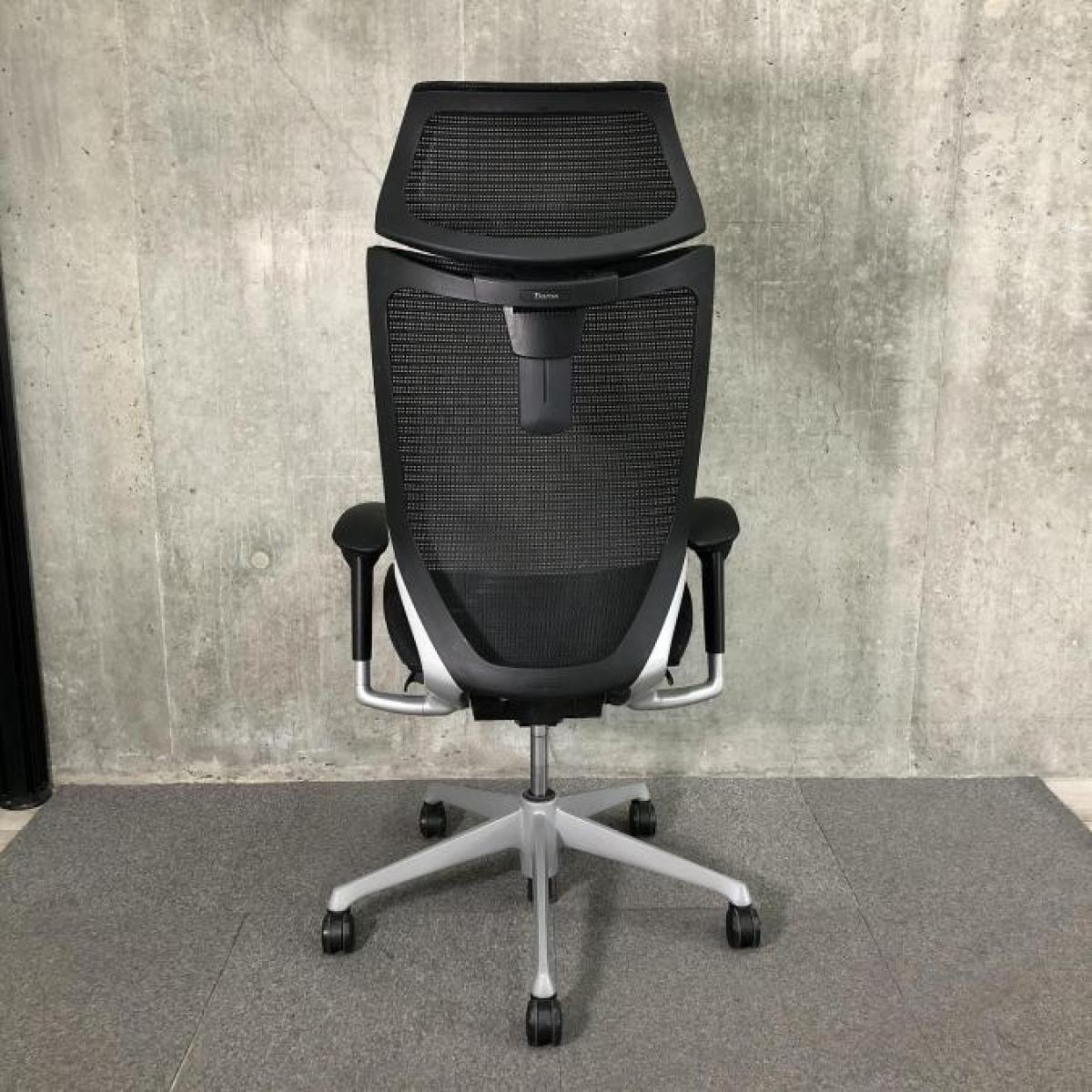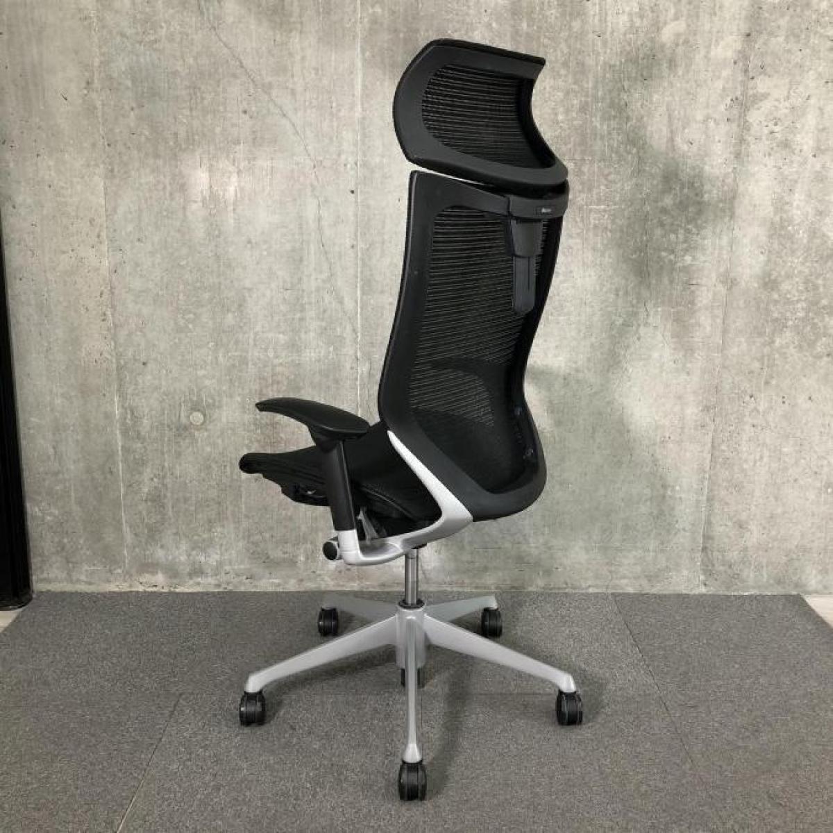 【新品可動ヘッドレスト付】【洗練されたデザインと多彩なバリエーションであらゆるオフィスに調和!自然な姿勢をサポート!】■オカムラ(okamura) バロンチェア(Baron) 肘付きハイバック ■背座面メッシュ ■可動肘/ヘッドレスト付 ■ブラック- 春日部・越谷店