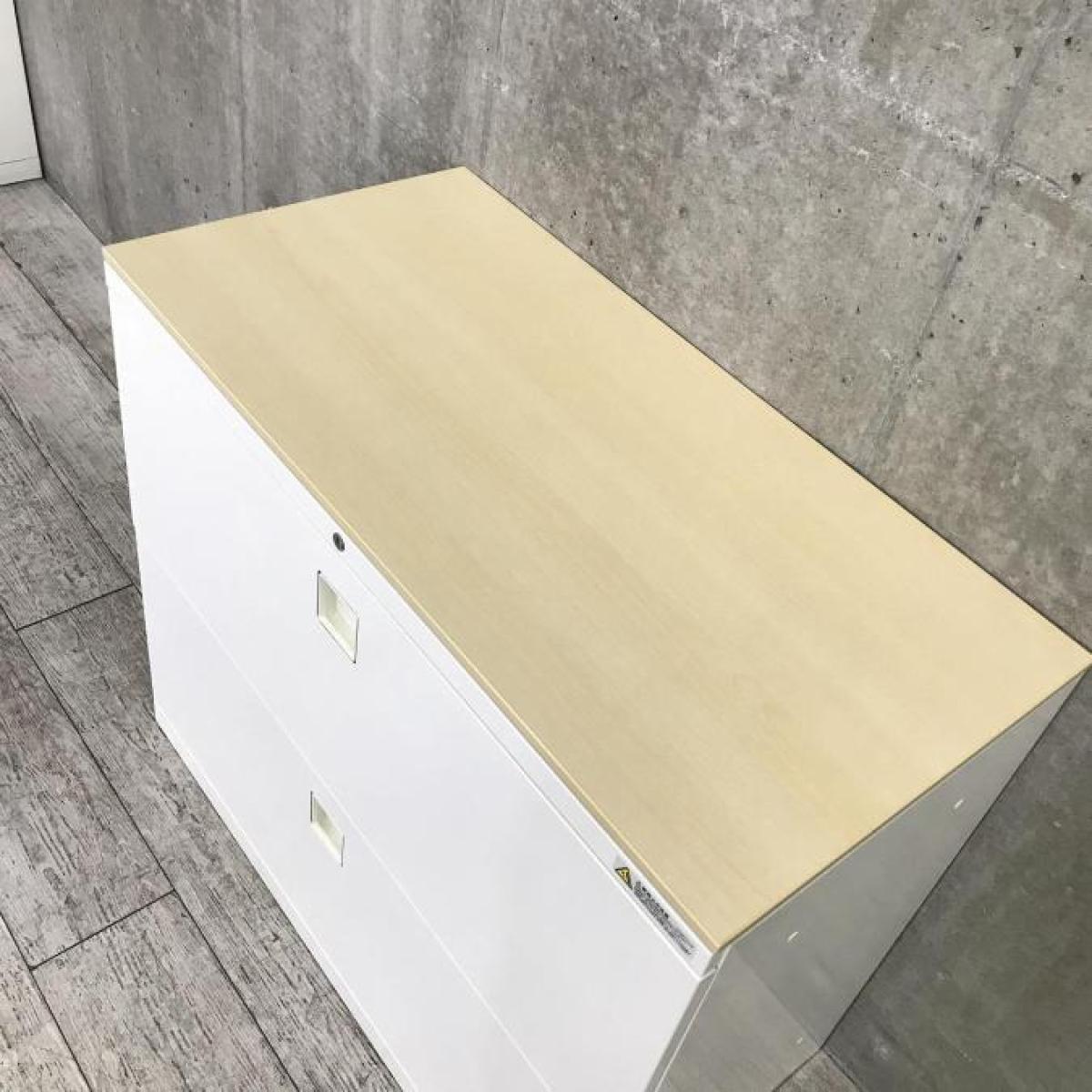 オカムラ レクトライン 3段ラテラル書庫 ホワイト天板 シリンダー錠 鍵付き ※取っ手部分に若干日焼けあり