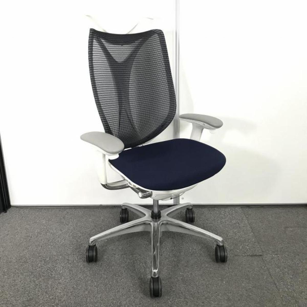 【在庫入替セール品】【2022年製/前傾チルト付きで作業効率アップ!長時間のデスクワークでも快適なオカムラ製の高級シリーズ!】◾️オカムラ/サブリナ/ダークブルー/肘無/ランバー付【弊社使用欄:A01032640 K】