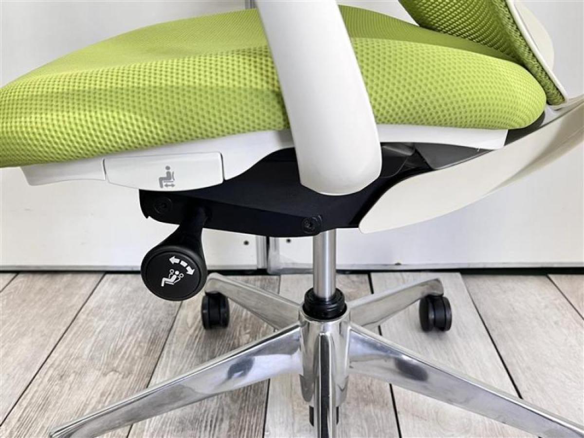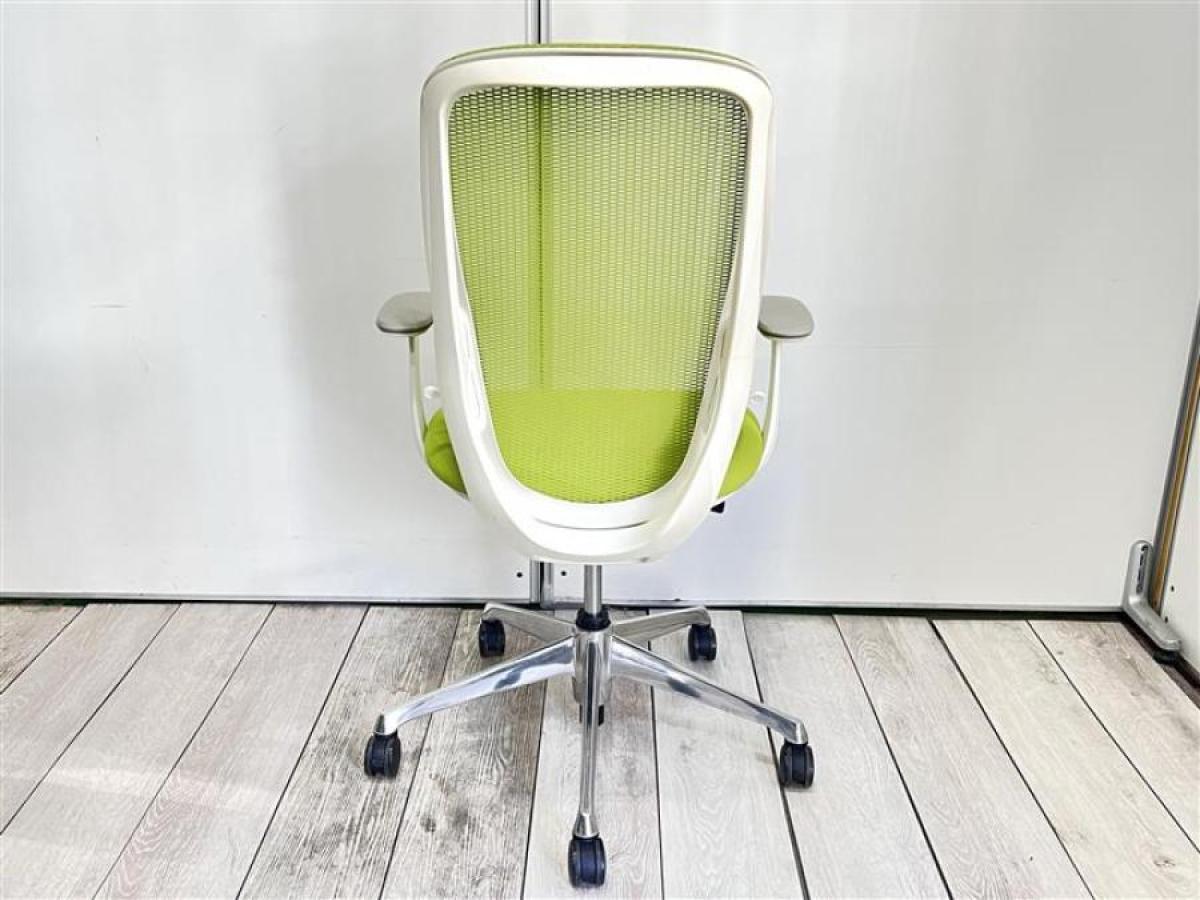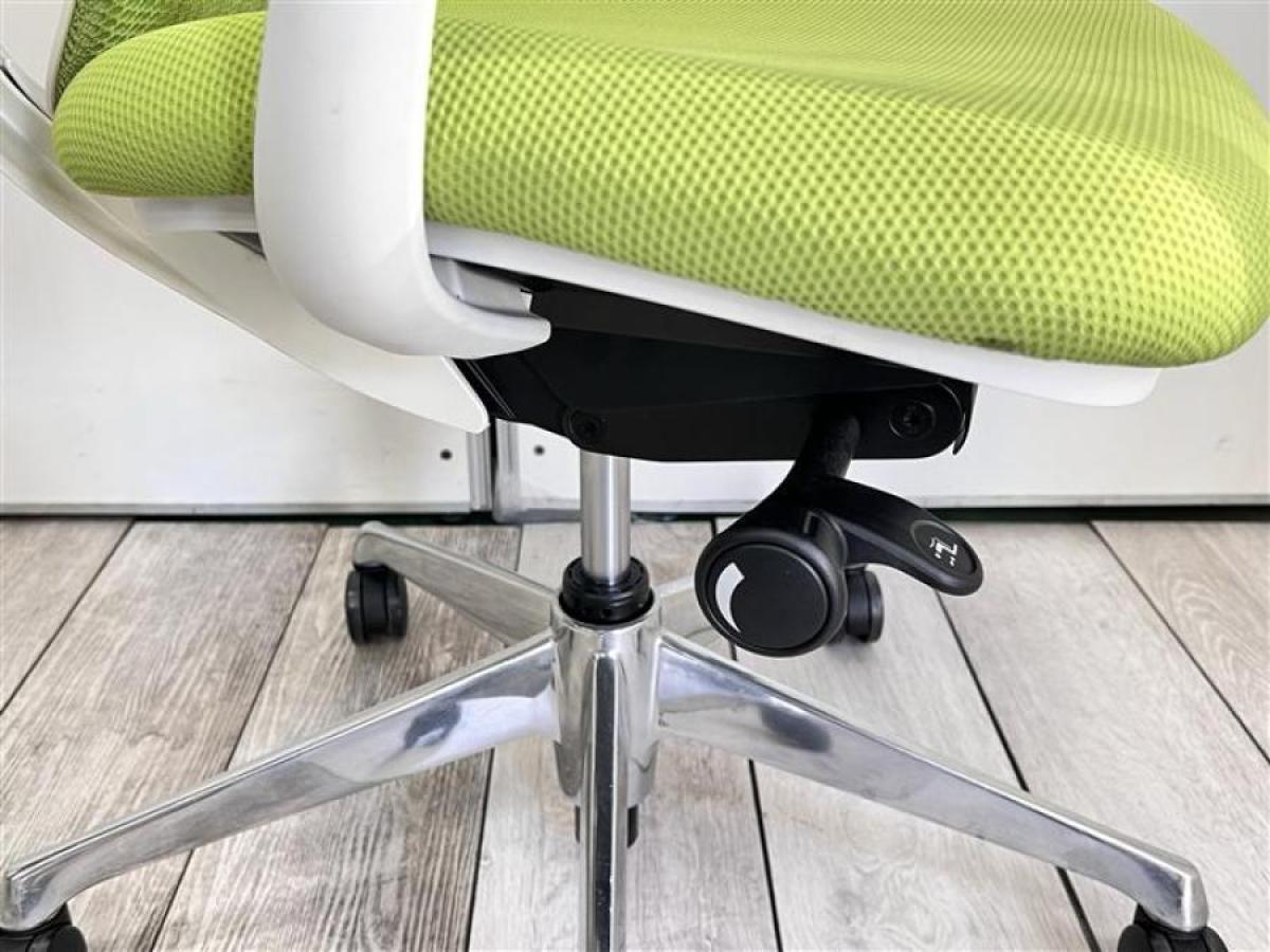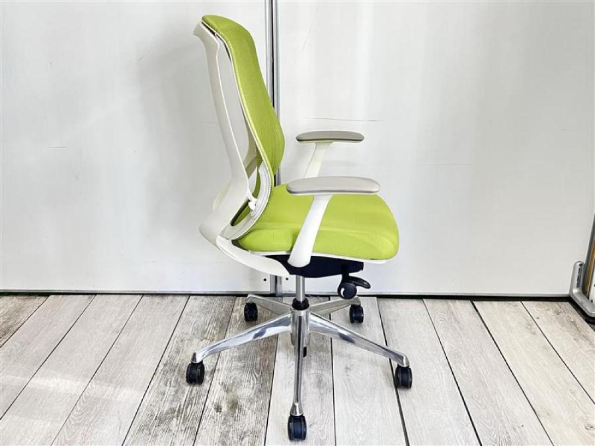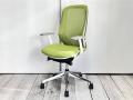 【在庫入替セール品】【人気のシルフィチェアヘッドレスト付きが1脚限定入荷!】オカムラ シルフィ ライムグリーン エクストラハイバック ホワイトフレーム デザインアーム(固定肘) 前傾チルト機能付き