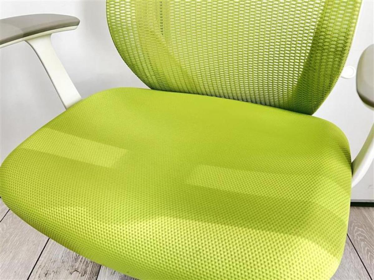【人気のヘッドレスト付!集中作業にもオススメのワークヴェール付!】■オカムラ シルフィーチェア 可動肘付 ライムグリーン エクストラハイバック ■背のカーブを変えられる!新感覚のオフィスシーティング!【Okamrua Sylphy】★