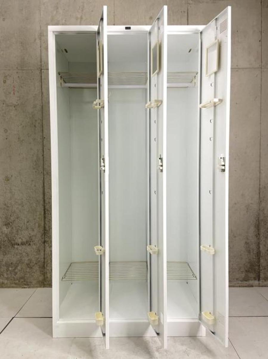 【博】※アイボリー色のため注意!/3人用ロッカー/内田/幅が広く収納スペース大/ 博多 天神 リサイクル 中古家具- 在庫数