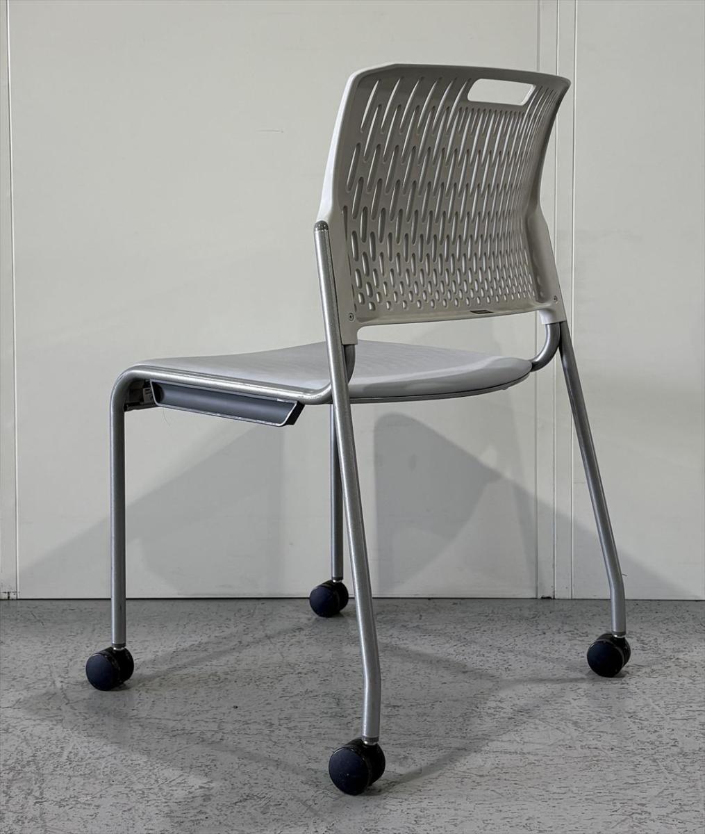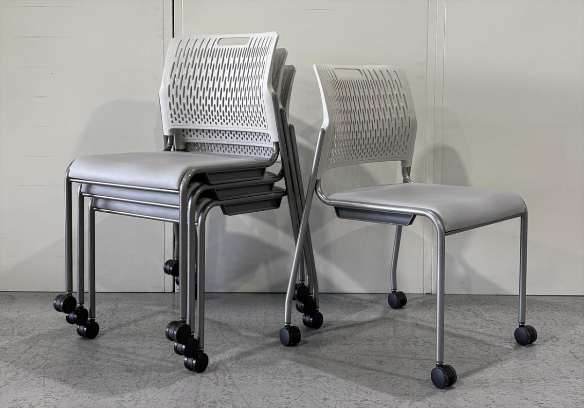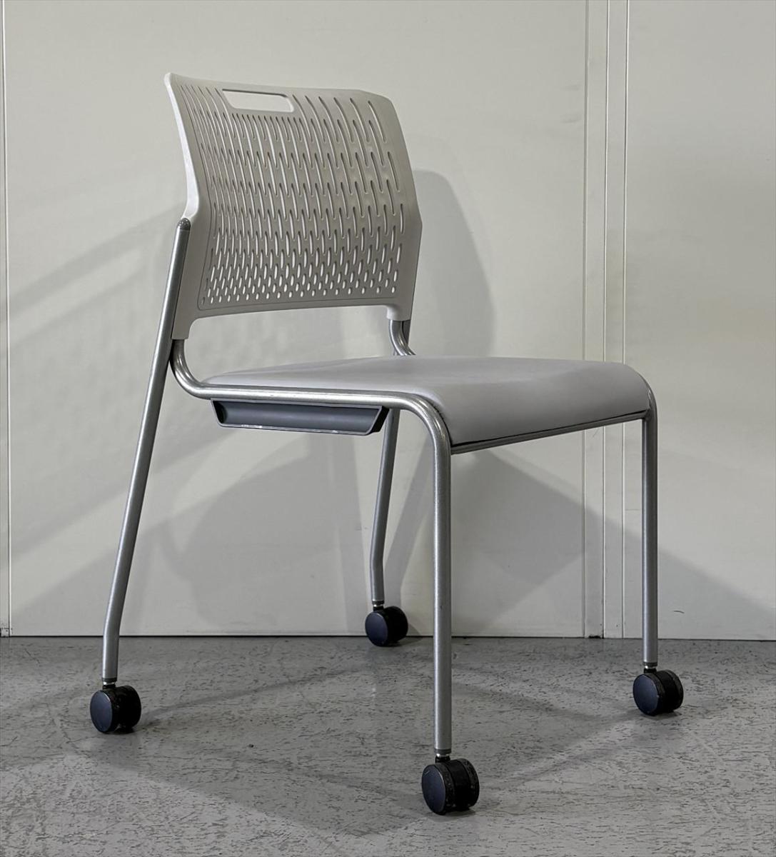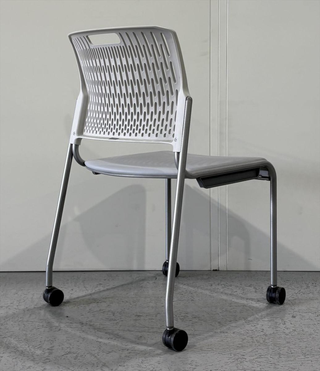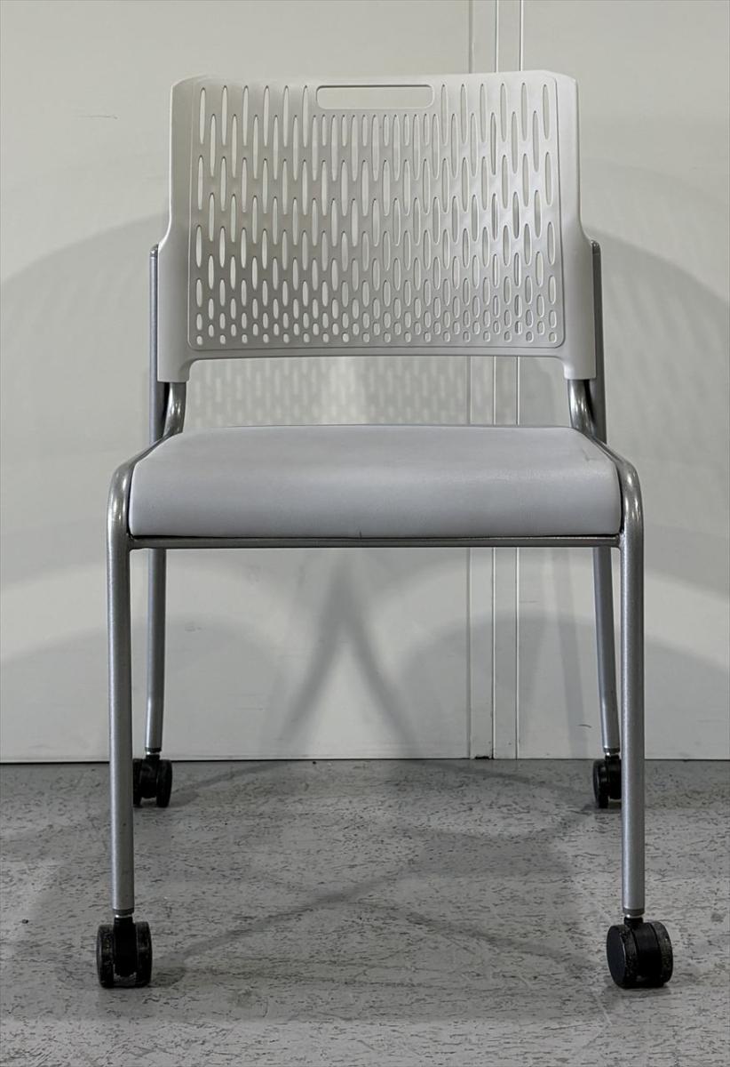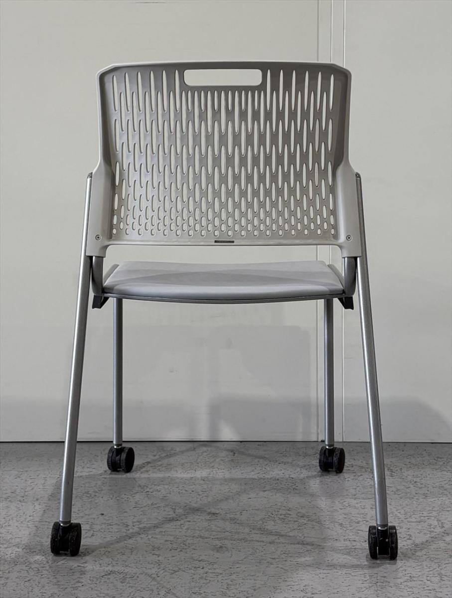 【クールなデザインのスタッキングチェア!重ねて収納!】■ウチダ(UCHIDA)製 FM-280シリーズ スタッキングチェア ミーティングチェア ■座面ビニールレザー ■グレー ■キャスター付き- なんば日本橋店