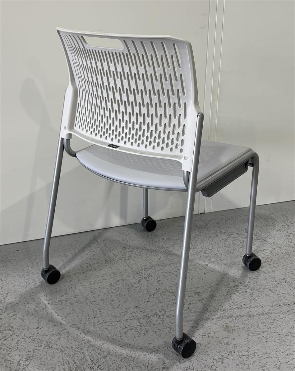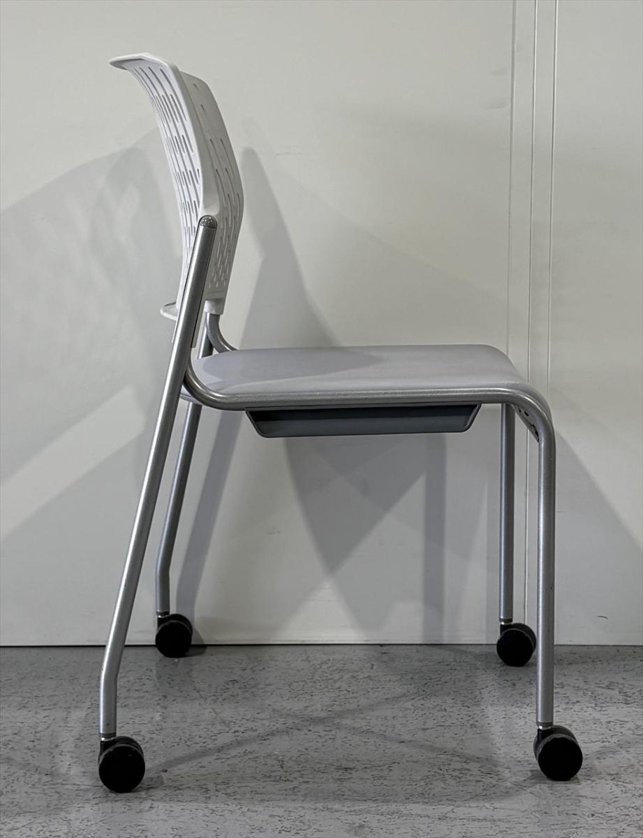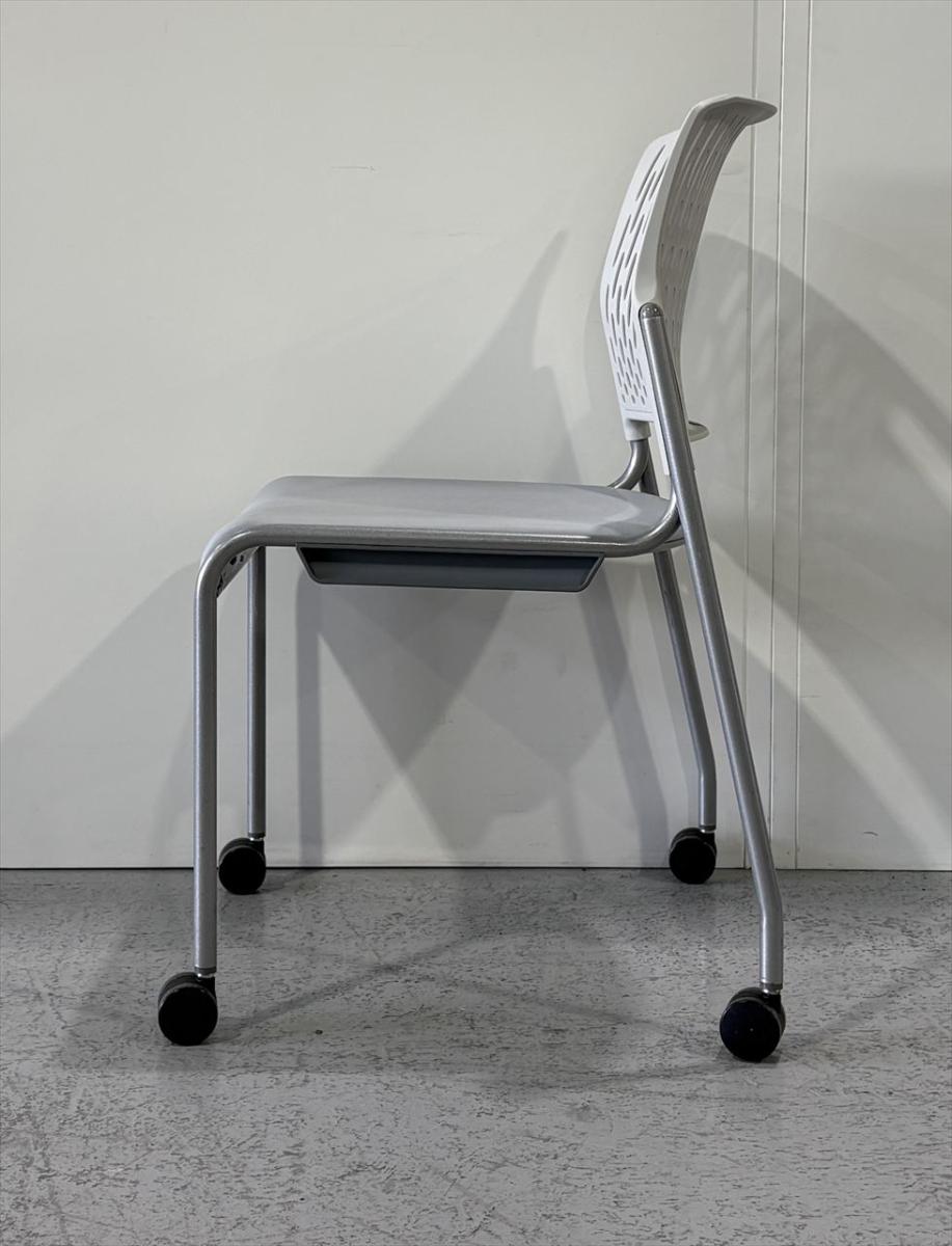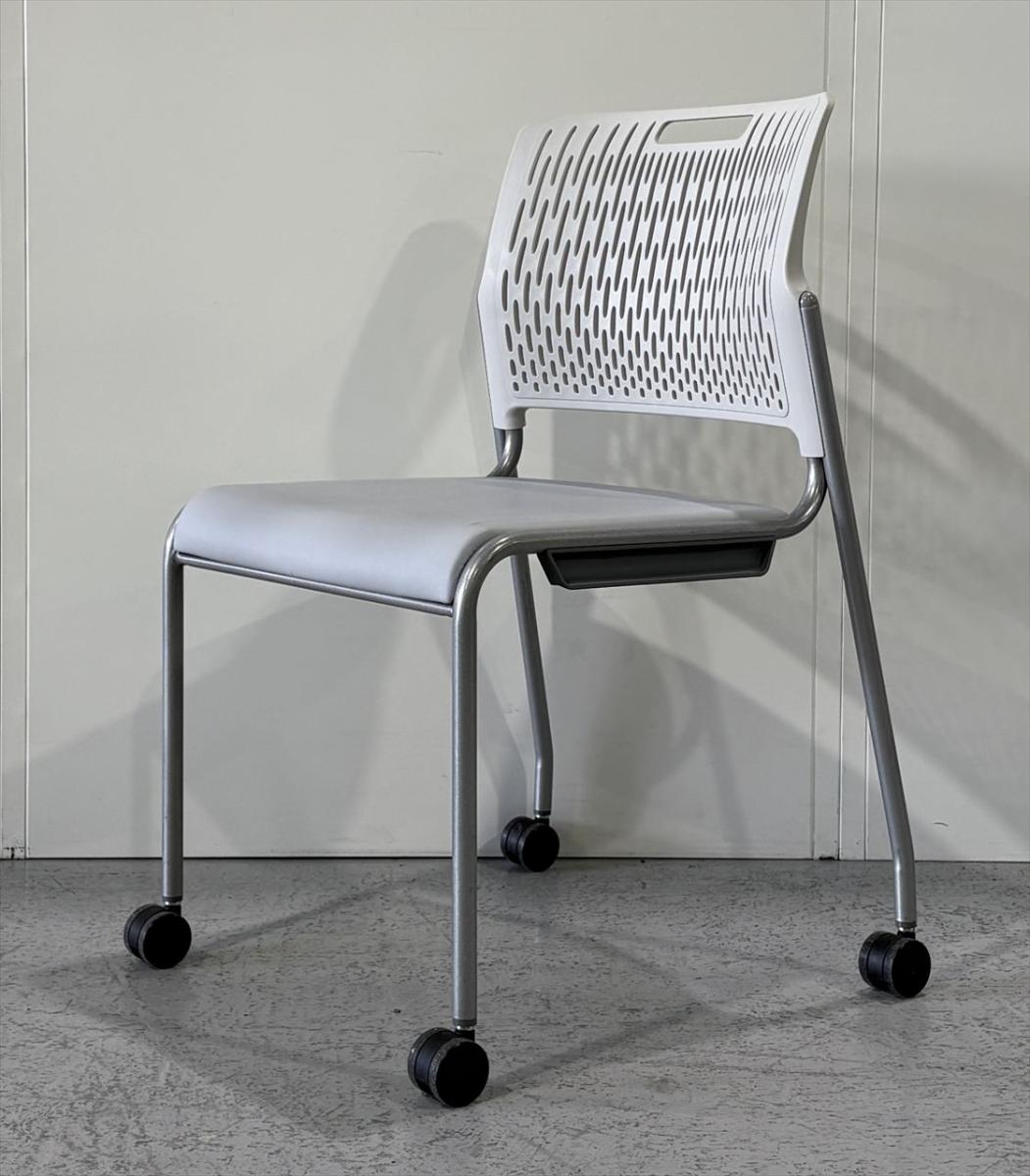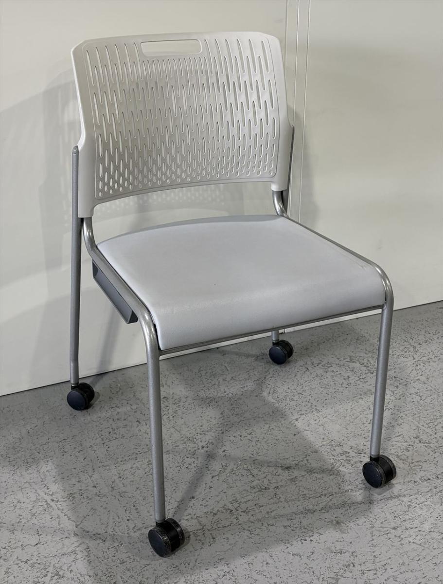 【クールなデザインのスタッキングチェア!重ねて収納!】■ウチダ(UCHIDA)製 FM-280シリーズ スタッキングチェア ミーティングチェア ■座面ビニールレザー ■グレー ■キャスター付き- なんば日本橋店