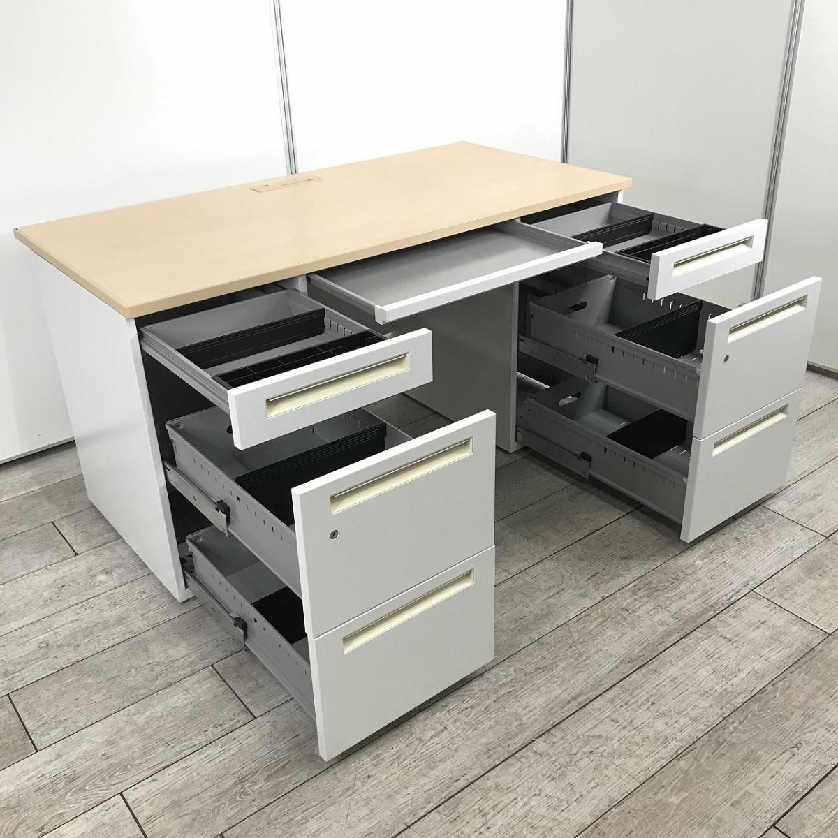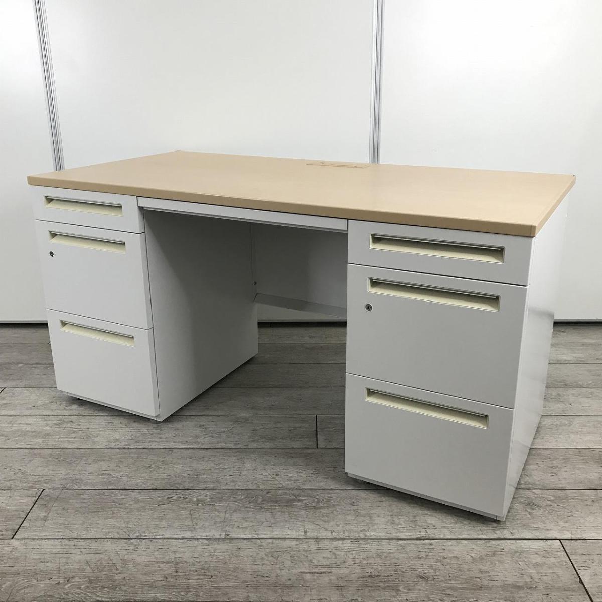 【2台入荷!】■ウチダ(UCHIDA)製 スカエナ(SCAENA)シリーズ 両袖机 W1400㎜ 配線:Kタイプ ■天板:木目ナチュラル × 本体ホワイト【2507】【A01026898】