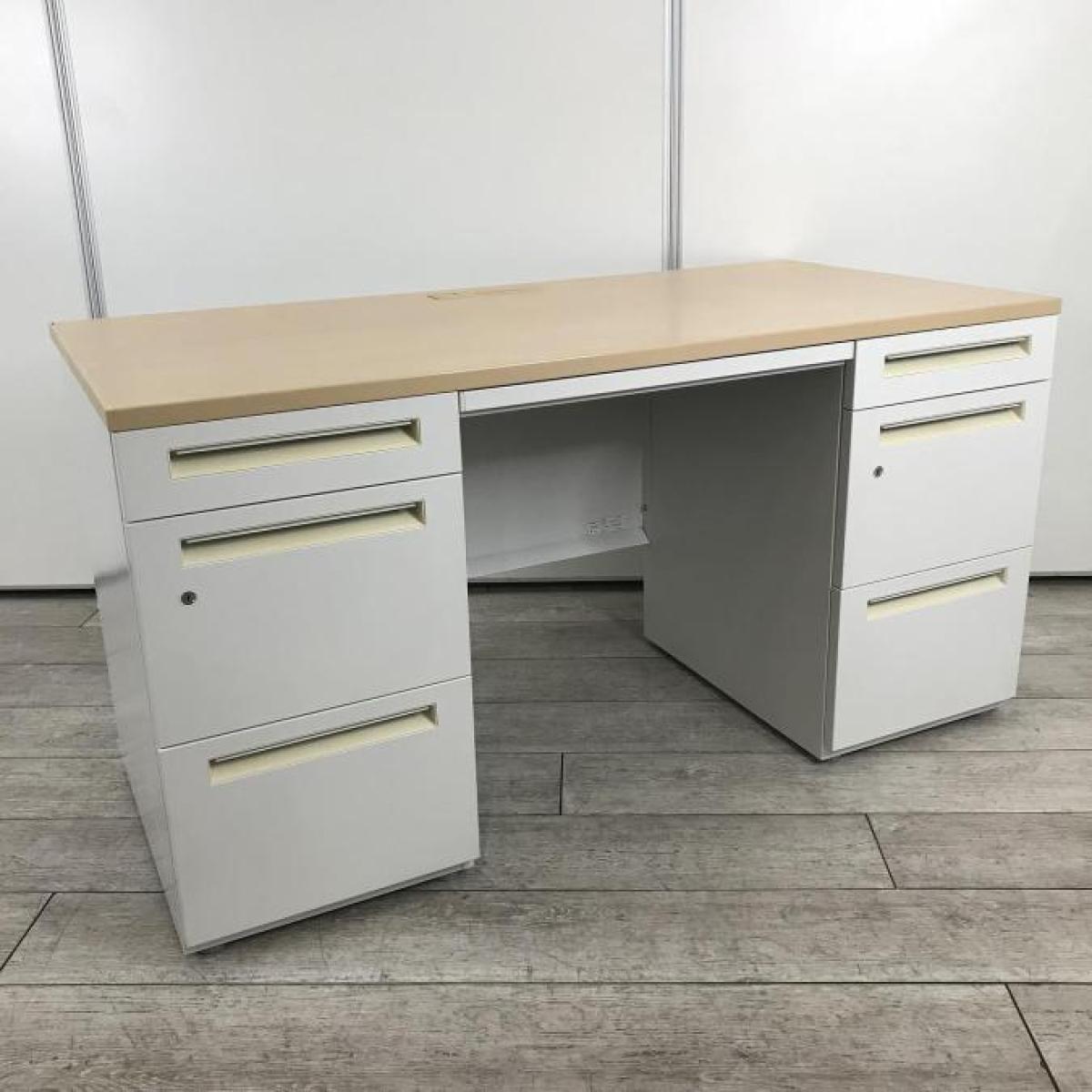 【2台入荷!】■ウチダ(UCHIDA)製 スカエナ(SCAENA)シリーズ 両袖机 W1400㎜ 配線:Kタイプ ■天板:木目ナチュラル × 本体ホワイト【2507】【A01026898】