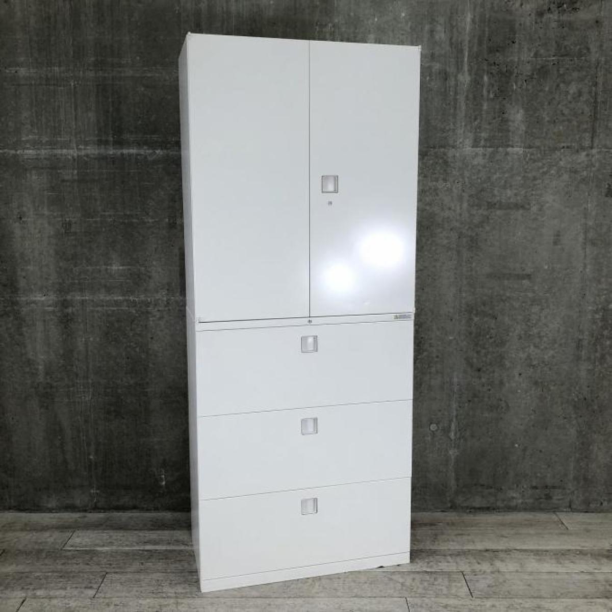 オカムラ レクトライン 3段ラテラル+両開き扉の書庫セット ホワイト シリンダー錠 鍵お付けします 人気商品