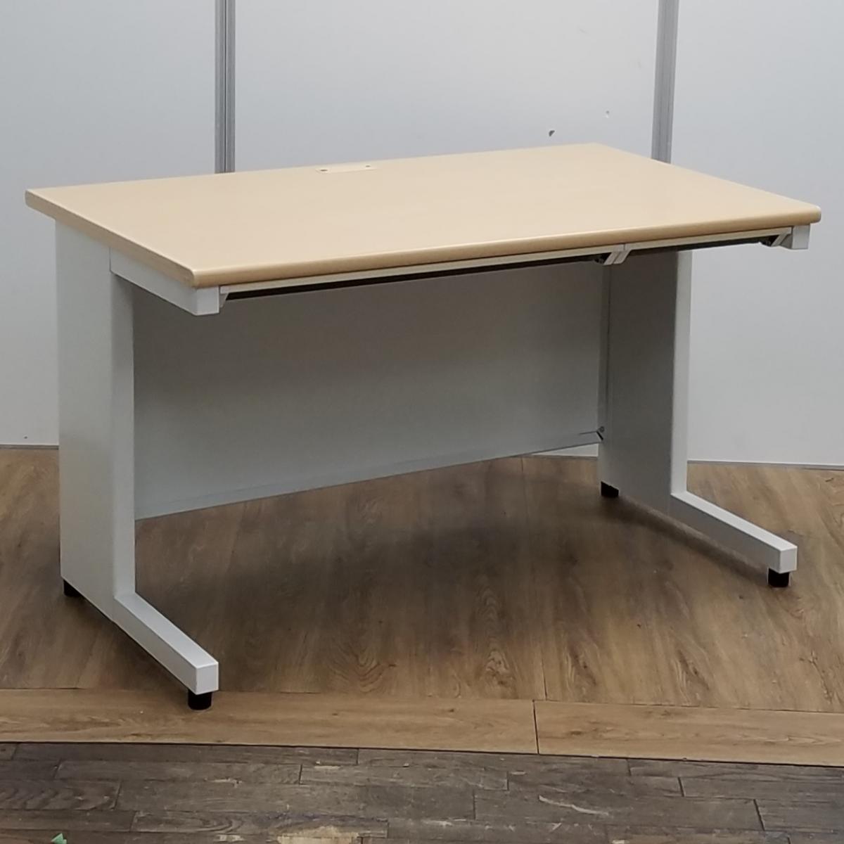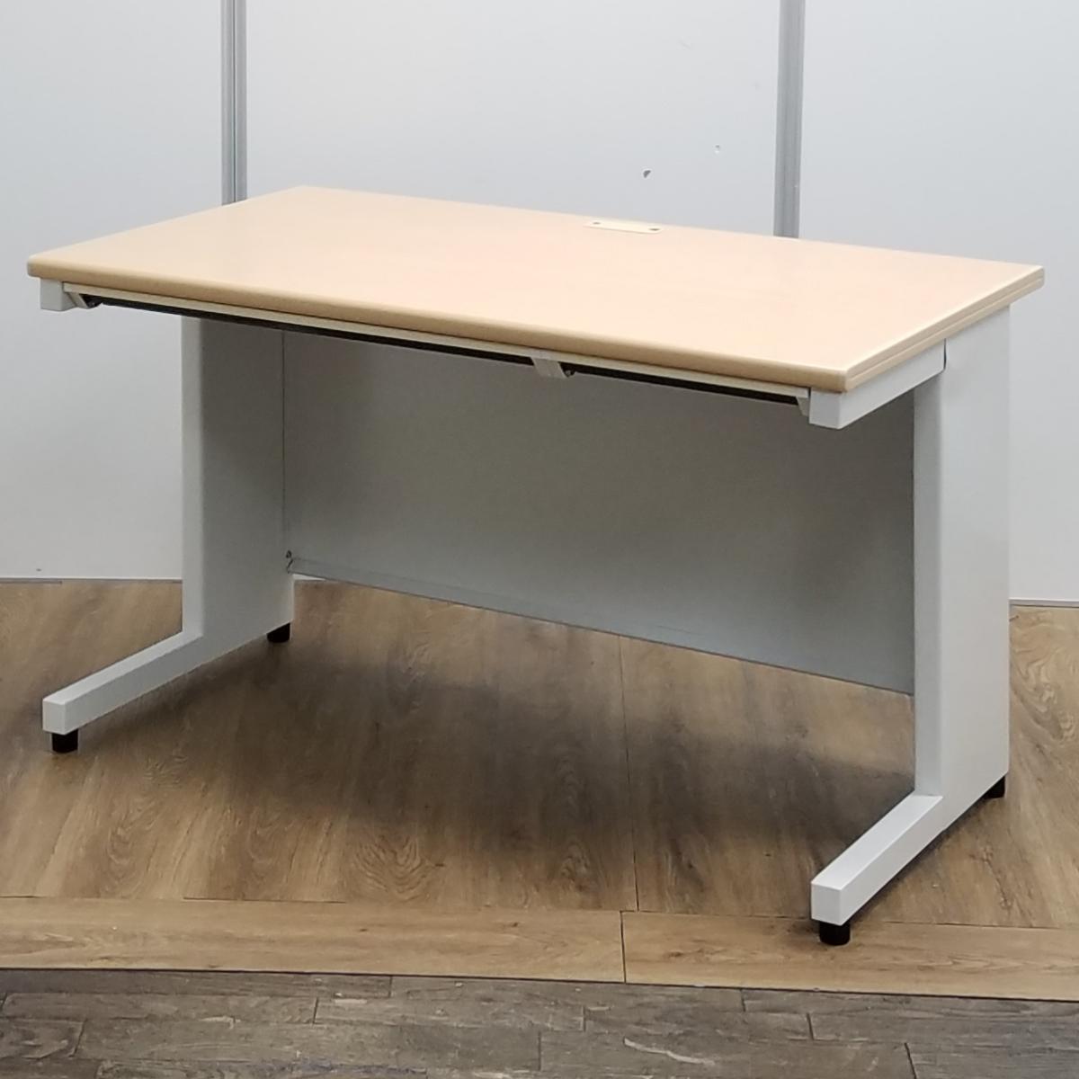 【ベーシックな使いやすさ・ローコストの引き出し付きデスク!】■プラス (PLUS) 製 フラットラインシリーズ 平デスク W1200mm 引き出し付(日焼け有) ■本体:ホワイト 天板:木目ナチュラル(メープル調) 【弊社使用欄:A01040783/A01035962】