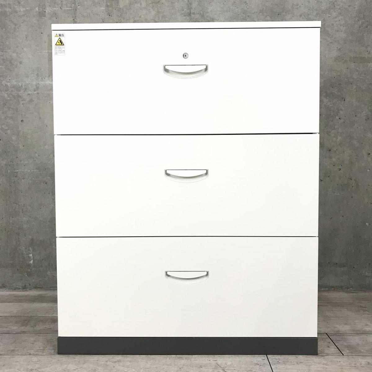 【引き出し式・シンプルキャビネット!】■生興 (SEIKO) クウォール (QUWALL) 3段ラテラル ローキャビネット W900/D450/H1140mm ■ホワイト ■シリンダー錠- つくば店