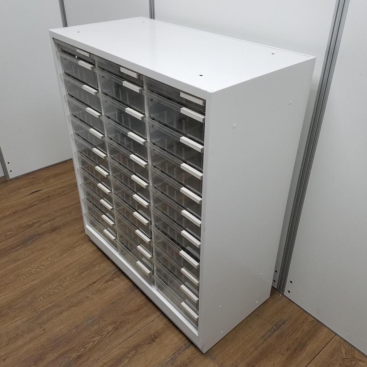 【書類・備品整理の必需品!】【珍しいクリトレが入荷!3列×浅型11段+深型5段】■イトーキ(ITOKI)製 シンラインシリーズ クリスタルトレー ローキャビネット ■3列×浅型11段+深型5段 ■天板・ベース付 ■色:ホワイト