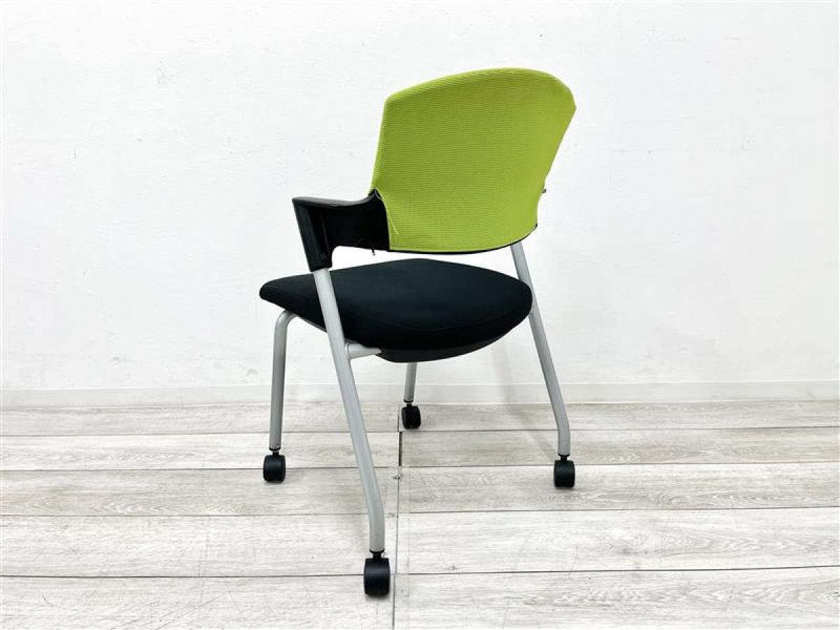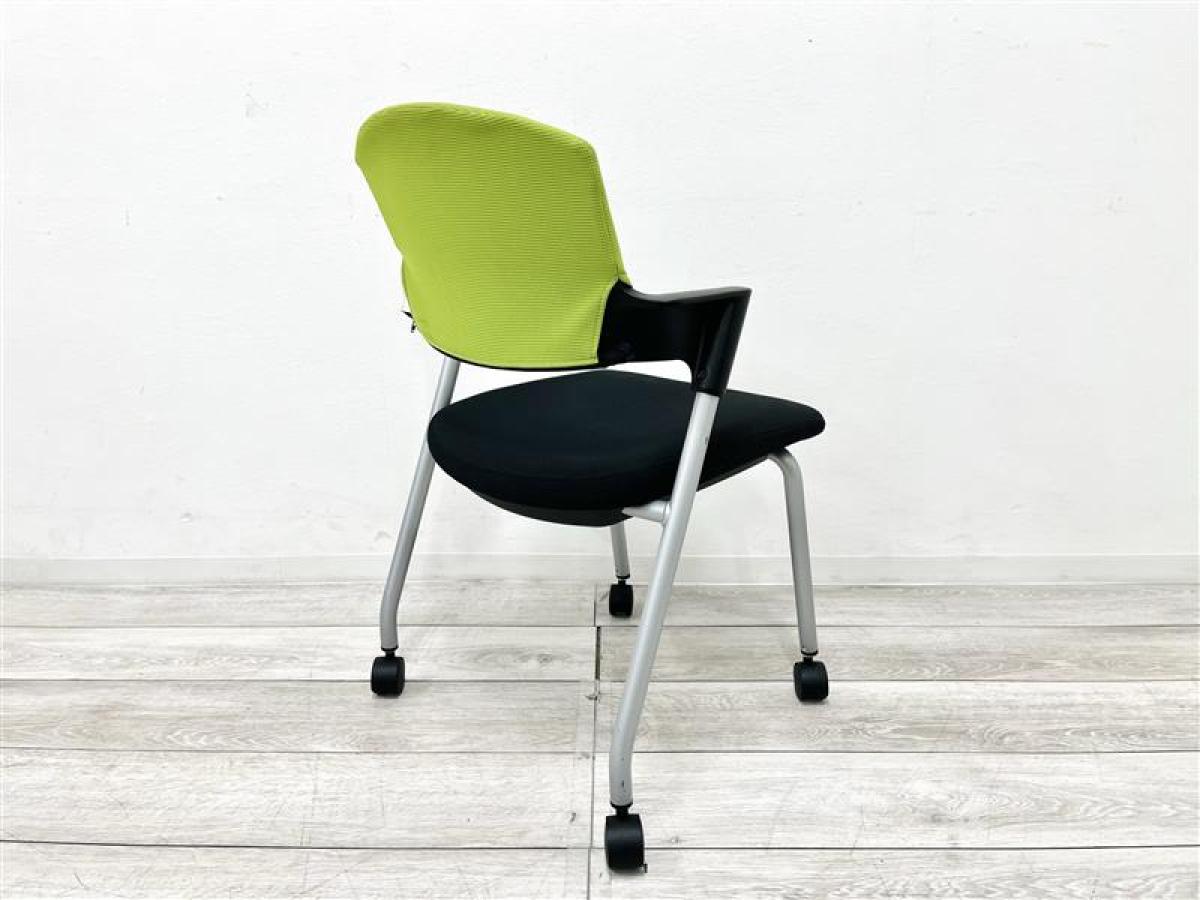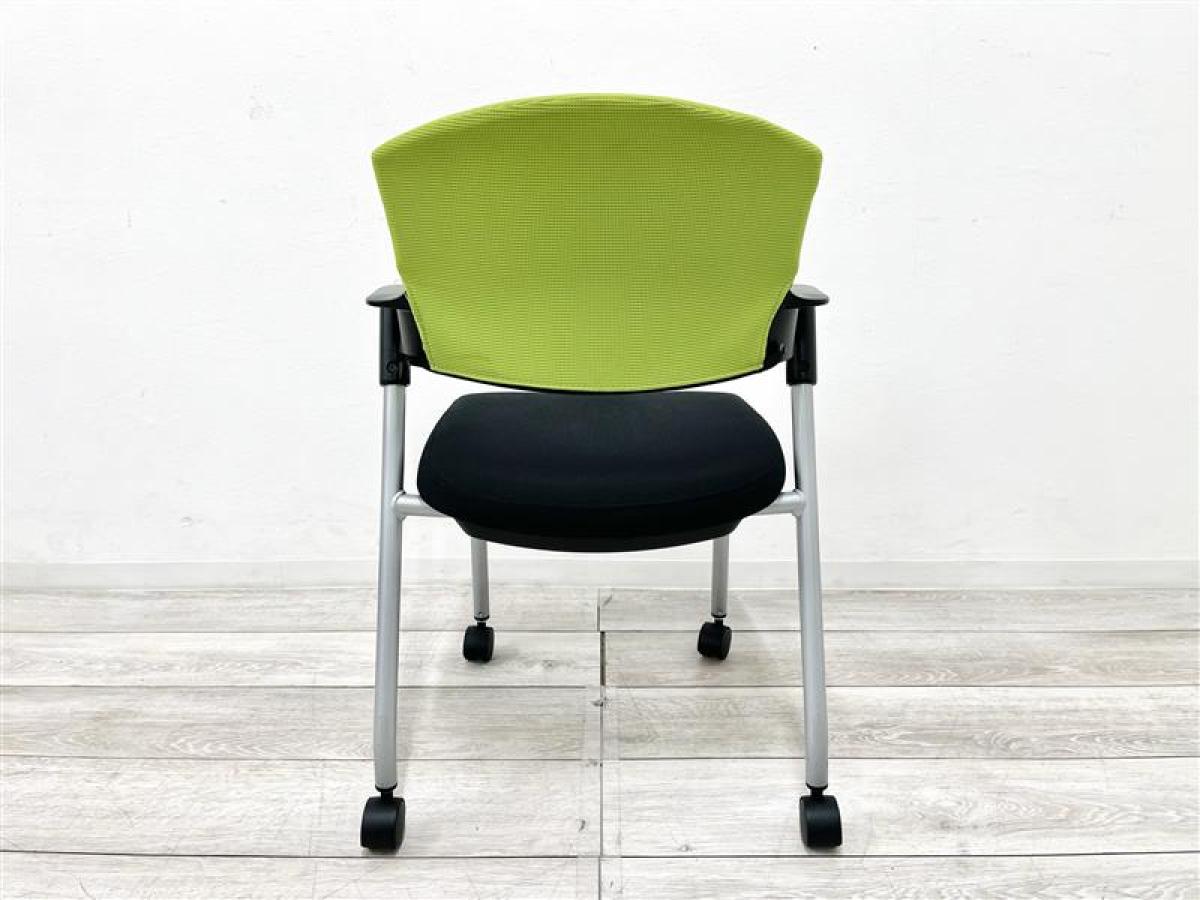 【定価約5万円】【重ねて収納可能!シンプルなデザインのスタッキングチェア入荷!】■コクヨ/プロッティ■スタッキングチェア ■背もたれグリーン/座面ブラック 多目的チェア キャスター付き- 仙台店