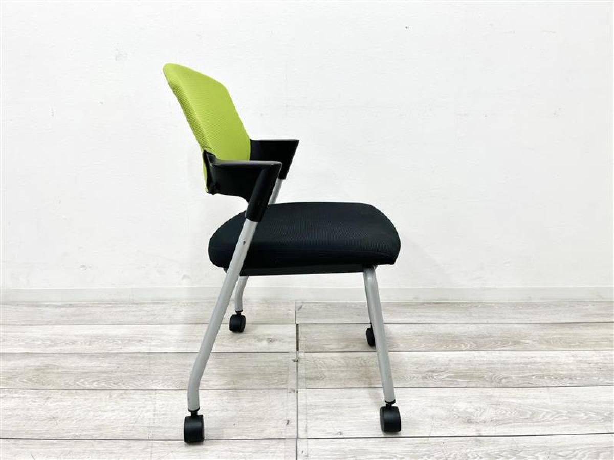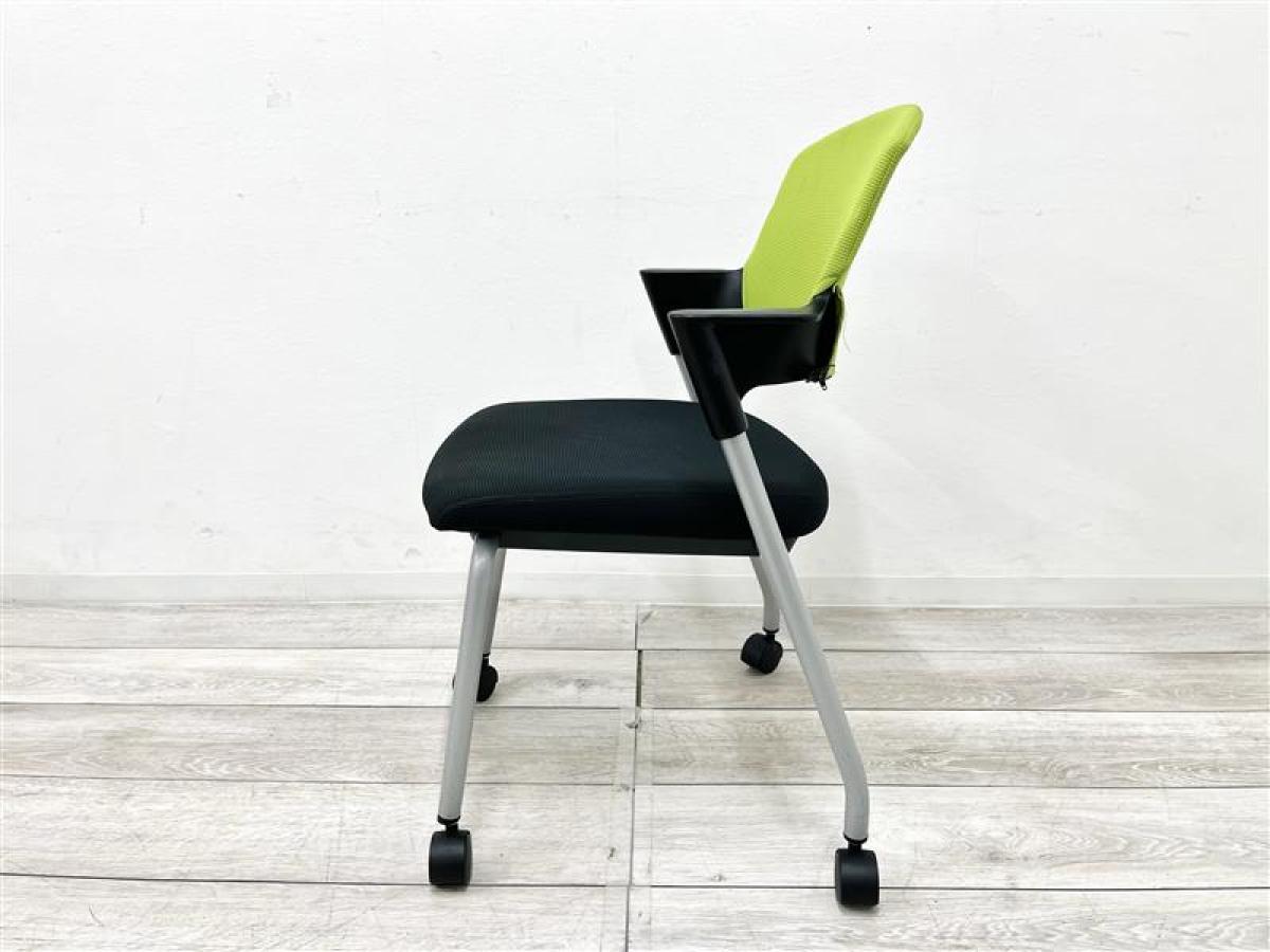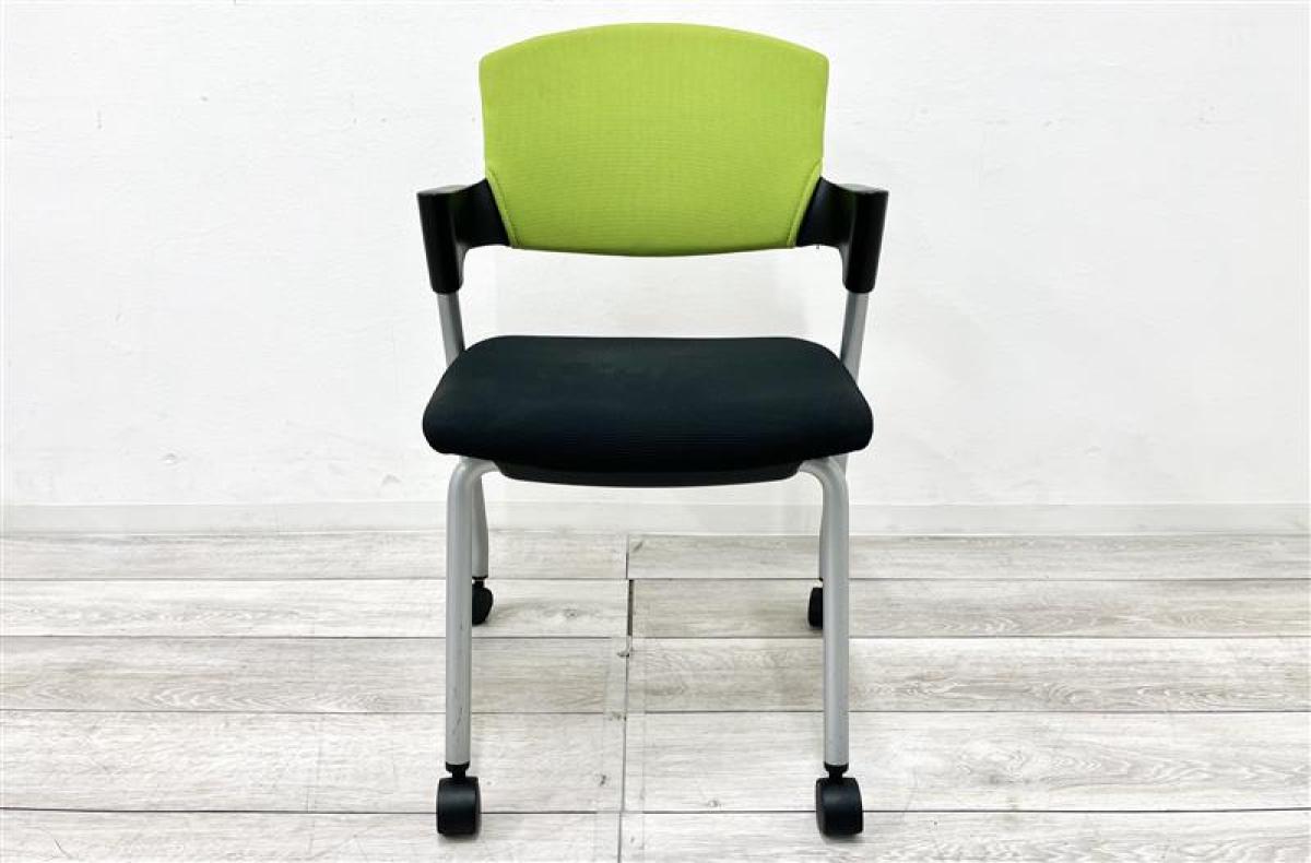 【定価約5万円】【重ねて収納可能!シンプルなデザインのスタッキングチェア入荷!】■コクヨ/プロッティ■スタッキングチェア ■背もたれグリーン/座面ブラック 多目的チェア キャスター付き- 仙台店