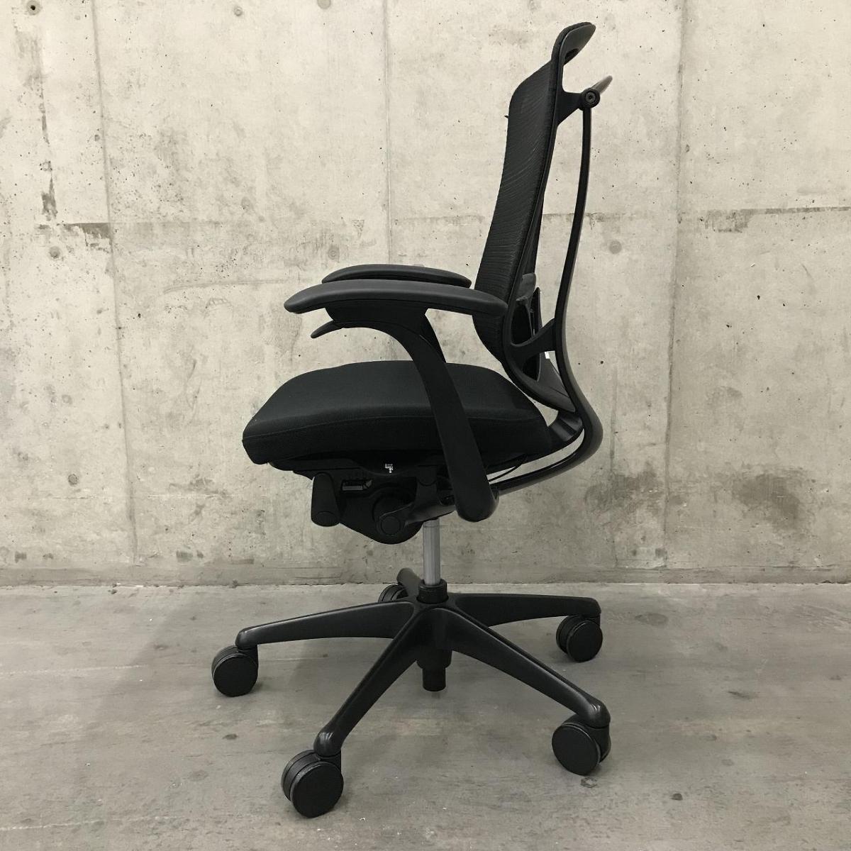 【2021年製】【世界で認められた革新的タスクチェア!人間工学に基づいた快適な座り心地を実現!】/オススメ(おすすめ) /人気商品【弊社使用欄:A01047381】■オカムラ(okamura)製 コンテッサ セコンダ ハイバック肘付き 可動肘 背/座面メッシュ ランバー付き ヘッドレスト付き ブラック