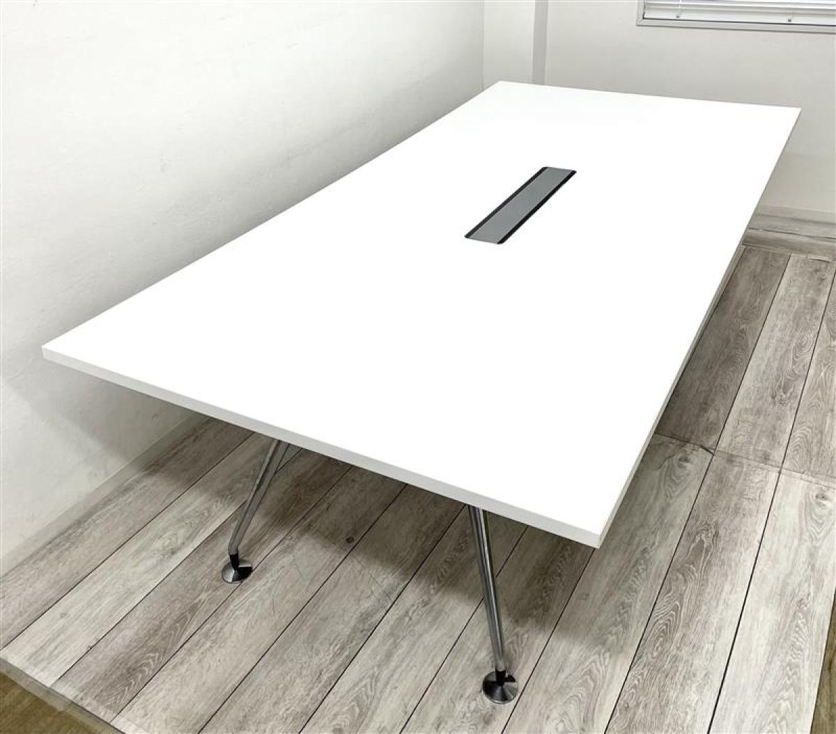 【定価約13万円】【洗礼されたお洒落なポリッシュ脚!広々使える幅2400㎜サイズの大型ミーティングテーブル入荷!】■E-CADシリーズ 配線ボックス付き■ホワイト ■残り1点 8~10人用- 在庫数