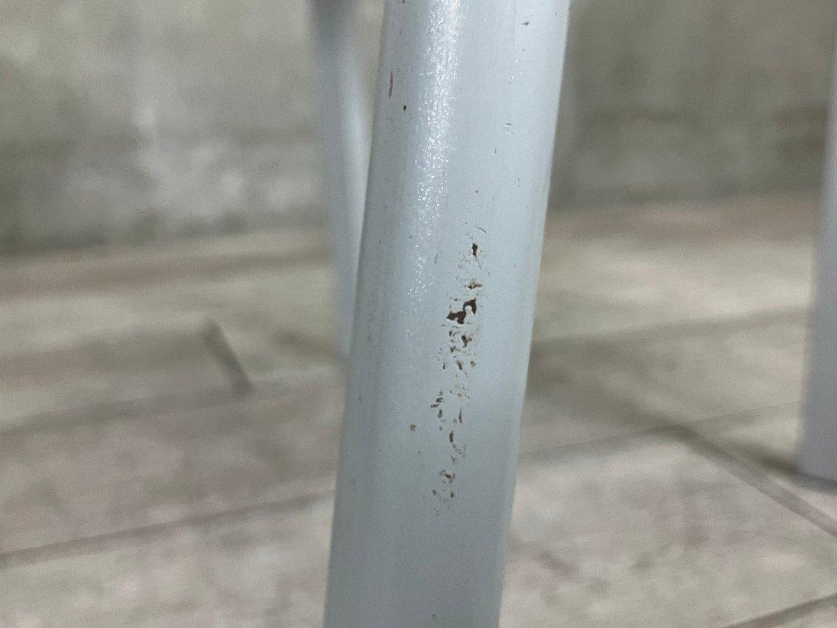 - かなり強い濃い黄ばみ・変色が商品全体にある。(例、座面・背もたれ、脚部等にある。)