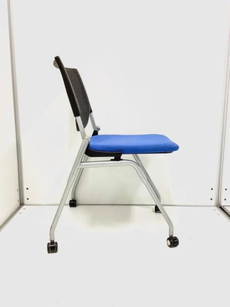 【在庫入替セール品!(本在庫限定価格)】フレキシブルに使えるキャスター付!■オカムラ プロスタックシリーズ ネスティングチェア ミディアムブルー ■【会議室にピッタリ!コンパクト設計で収納がしやすい!】【ABW】