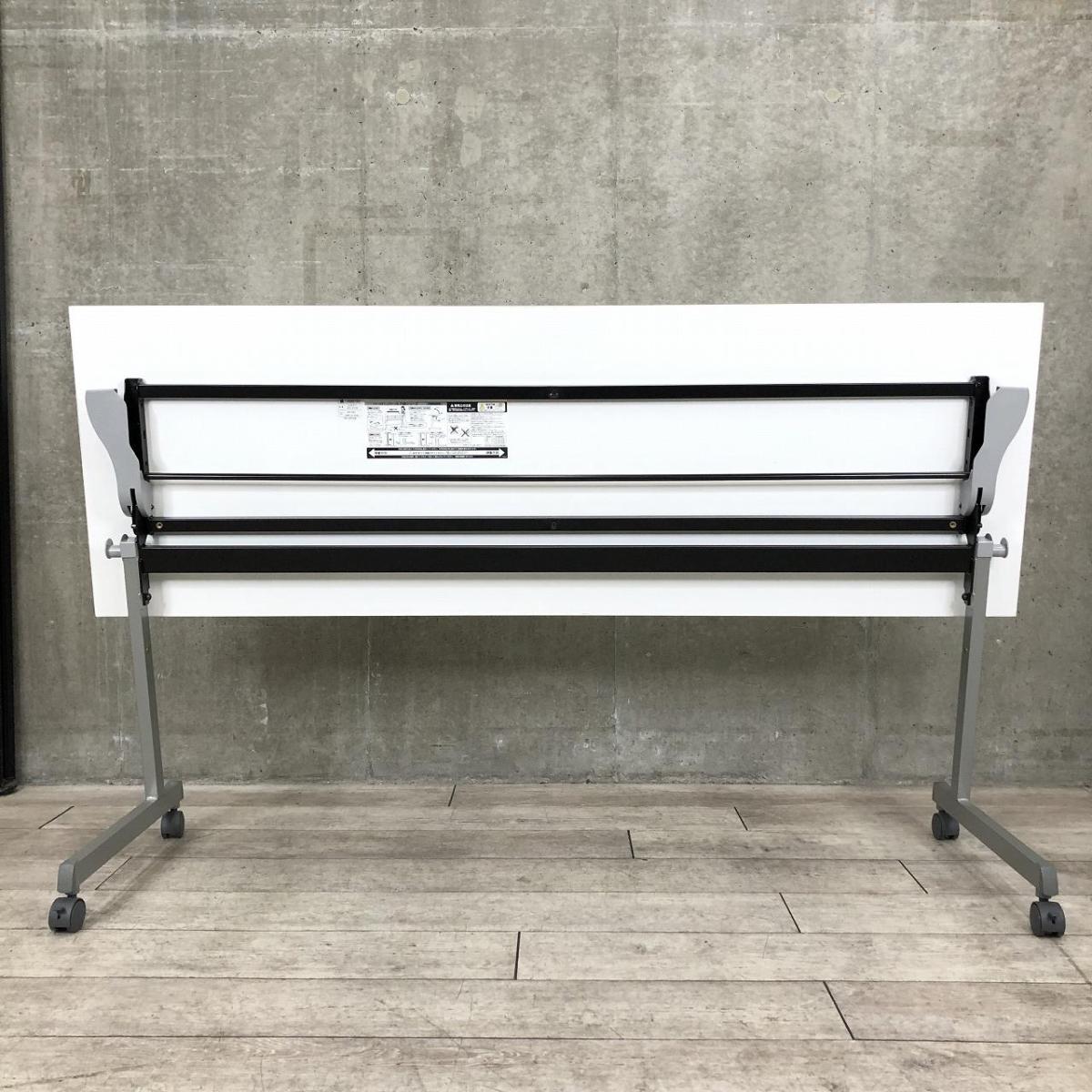 【天板跳ね上げ式で使わないときは省スペースになります!幅1800mmのミーティングテーブル!】■アイリスチトセ(IRIS CHITOSE) サイドスタックテーブル ミーティングテーブル W1800×D600㎜ ■ホワイト ■キャスター付- 神戸・三宮店