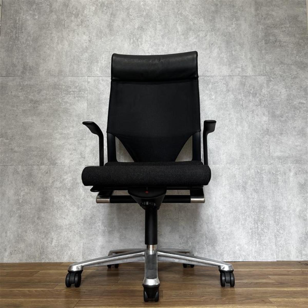 wilkhahn/ウィルクハーン モダス コンパクト ハイバック アームチェア ヘッドレスト 本革 黒