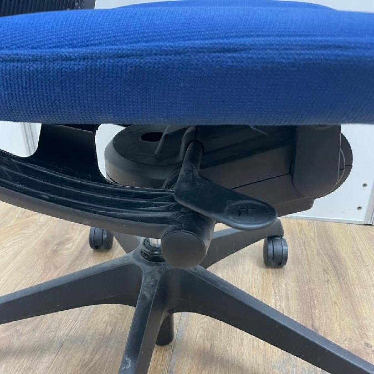 【関西倉庫在庫】オカムラ製 ヴィスコンテシリーズ ミディアムブルー ブラックフレーム コートハンガー付き 人間工学に基づいた心地よい座り心地! 高いデザイン性と快適なクッション性が人気 【弊社使用欄:A01046061】
