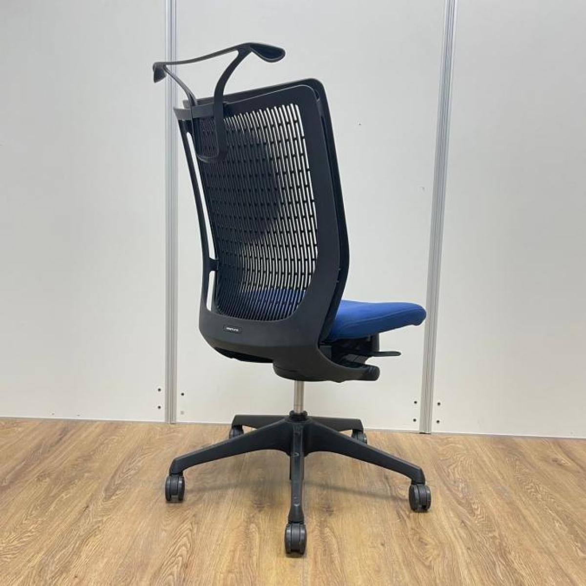 【商品入替6脚限り】オカムラ製 ヴィスコンテシリーズ ミディアムブルー ブラックフレーム コートハンガー付き 人間工学に基づいた心地よい座り心地! 高いデザイン性と快適なクッション性が人気 肘無しハイバックチェア!!- なんば日本橋店