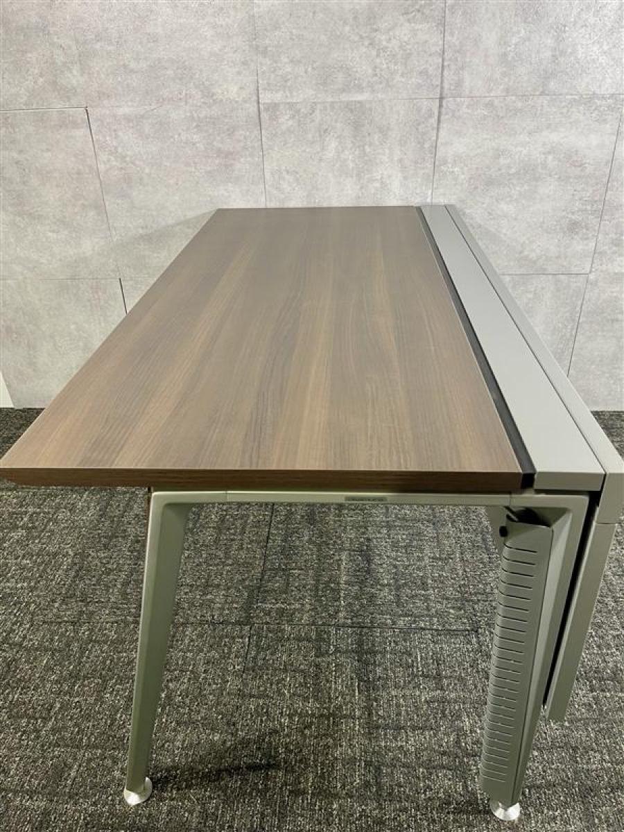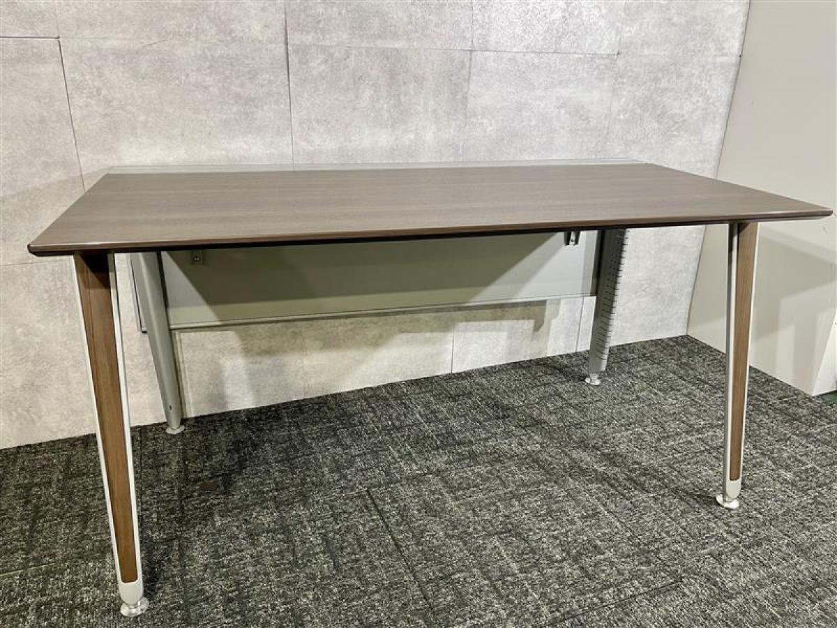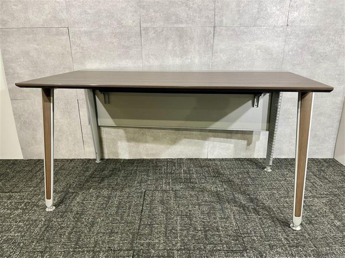 【限定1台☆】オカムラ製 プリシード テーブル 幕板付き ブラウン 木目天板 PCデスク フリーデスク 配線カバーあり- 福岡博多店