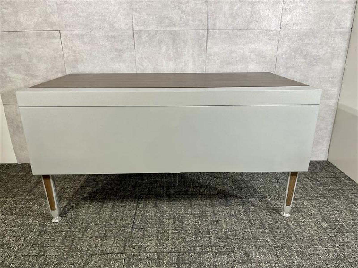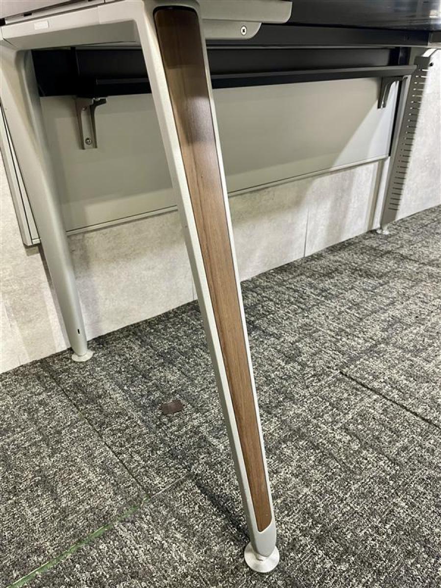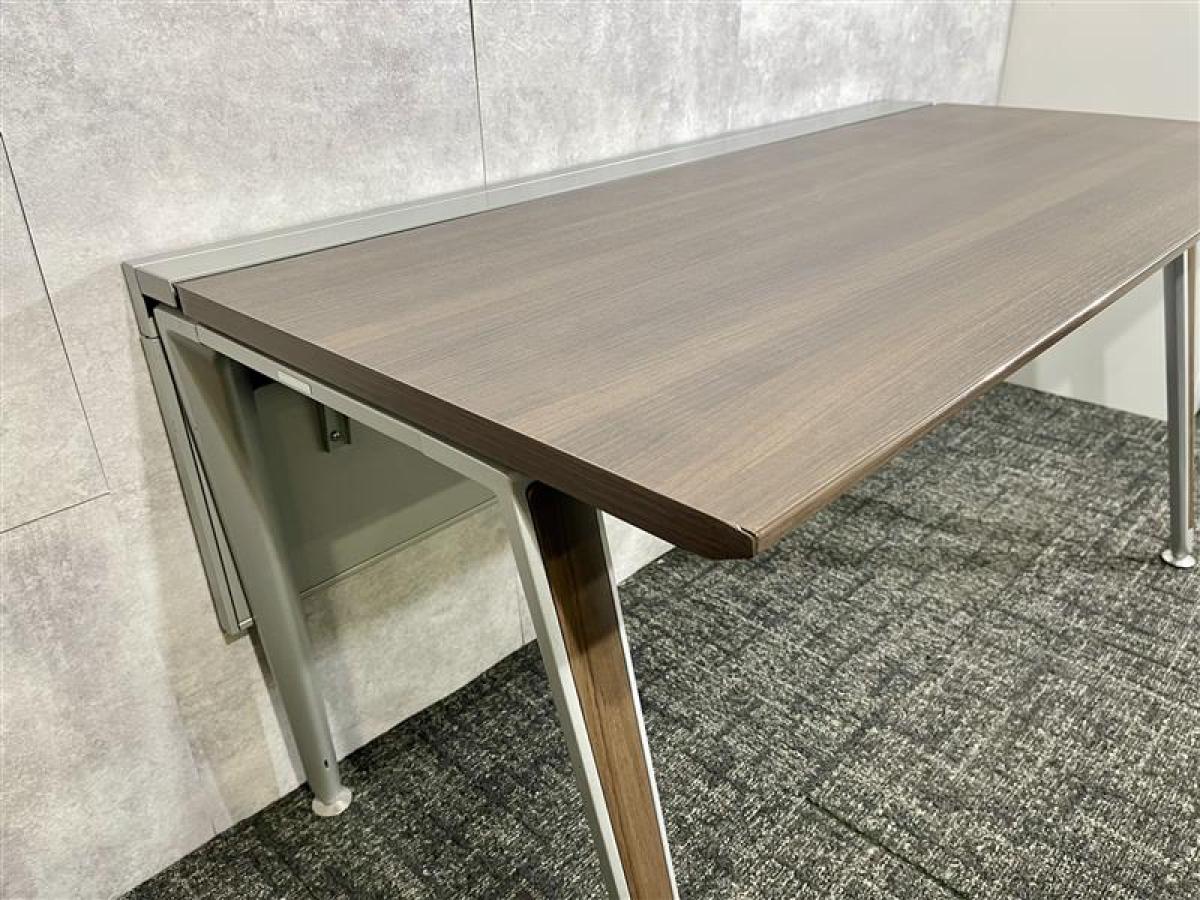 【限定1台☆】オカムラ製 プリシード テーブル 幕板付き ブラウン 木目天板 PCデスク フリーデスク 配線カバーあり- 福岡博多店