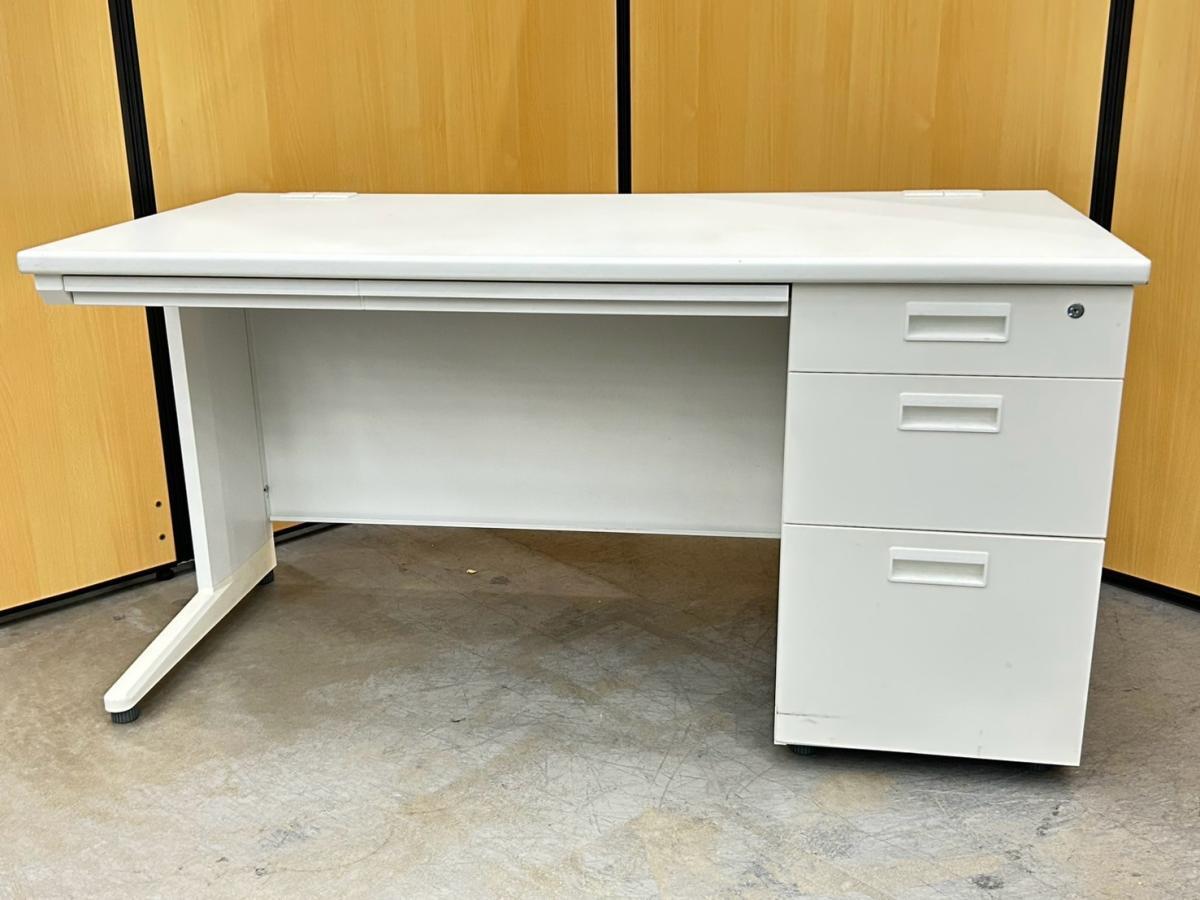 【W1400の広々デスク!】その他メーカー製/ホワイト/片袖机 【管理番号:KA】- 在庫数