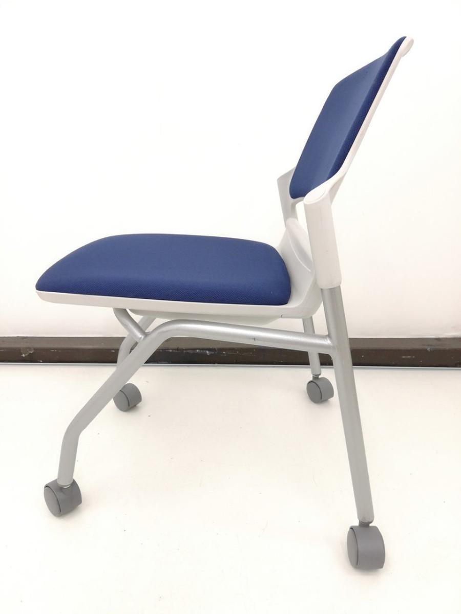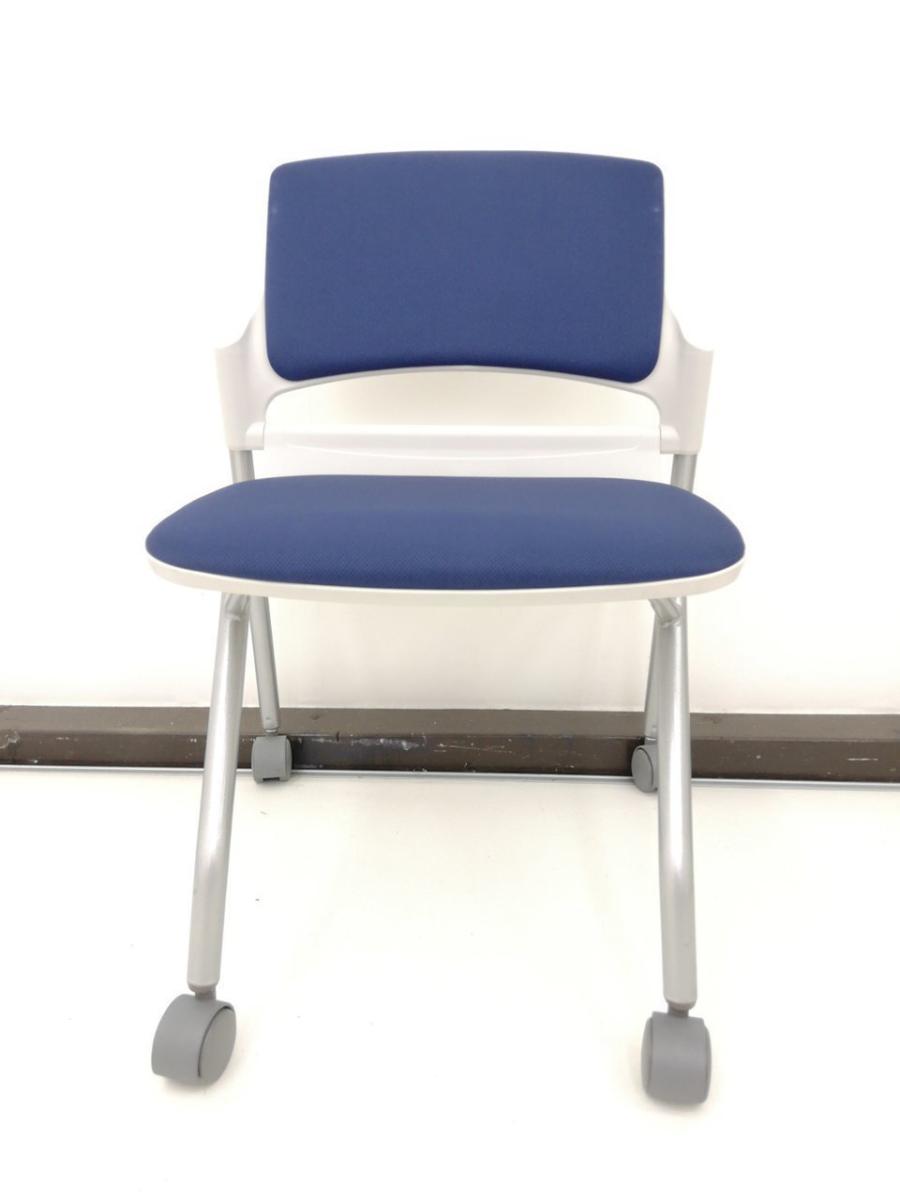 【ミーティング用に最適のキャスター付きネスティングチェア!シンプルなデザイン!】■ウチダ (UCHIDA)製 MF-180シリーズ ネスティングチェア ■キャスター付 ■レイズンブルー ×ホワイトシェル- つくば店