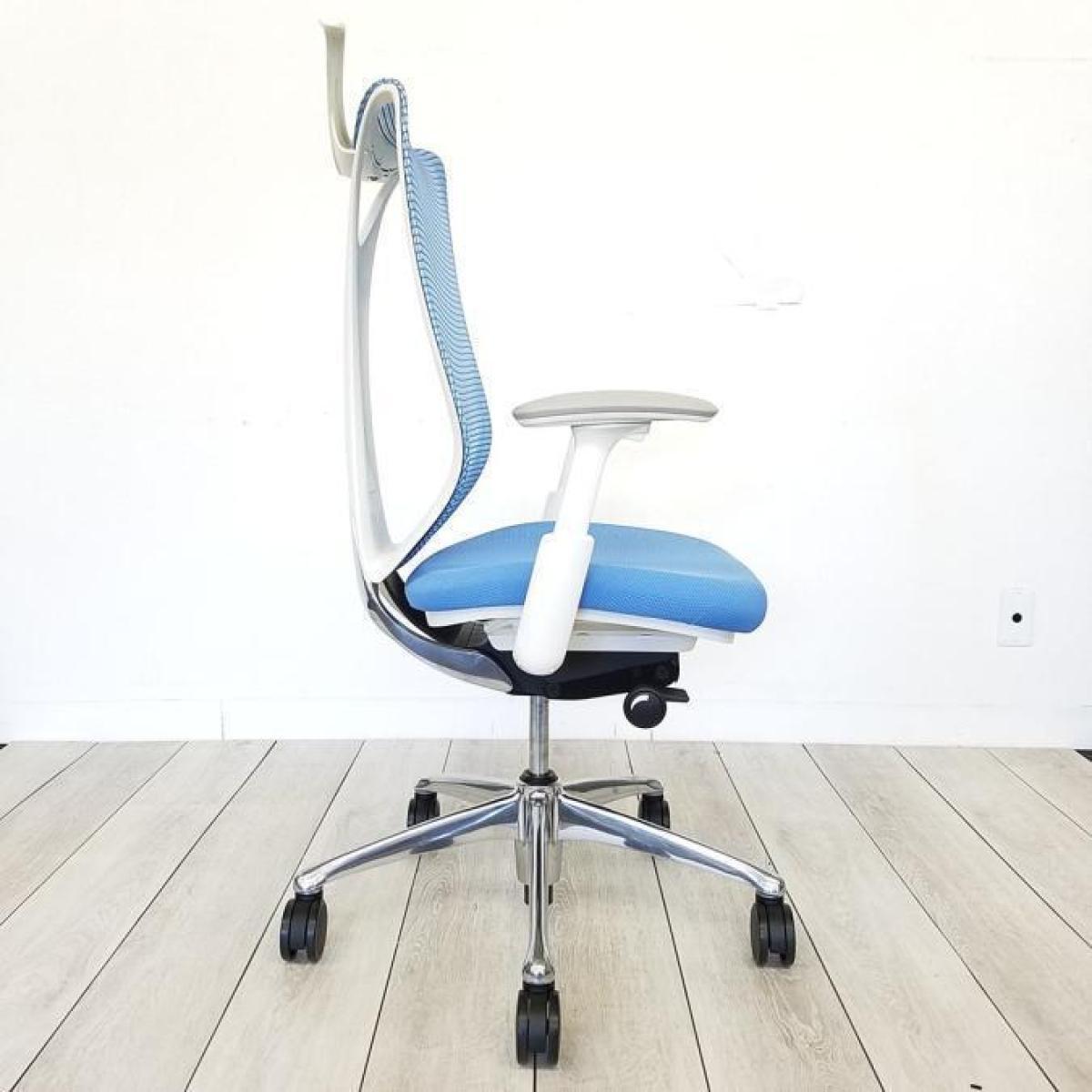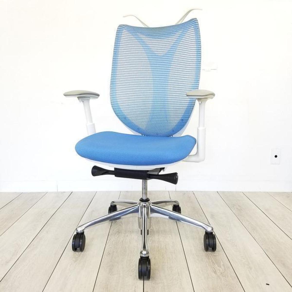 【4脚入荷】流れるような美しいフォルム「サブリナ」入荷!中古 オフィスチェア 高級チェア メッシュチェア テレワーク 在宅ワーク オカムラ ライトブルー アジャストアーム 前傾- 豊中・尼崎店