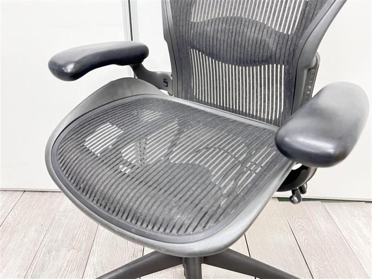 現品限り! 上下昇降機能に若干使用感ある為、特価 【憧れのHermanMiller/ハーマンミラーをご自宅に!】/オススメ(おすすめ) /人気商品【弊社使用欄:A00996081】■ハーマンミラー アーロンチェア 可動肘(ワンタッチタイプ) ランバーサポート フル装備 Bサイズ グラファイト- 池袋店