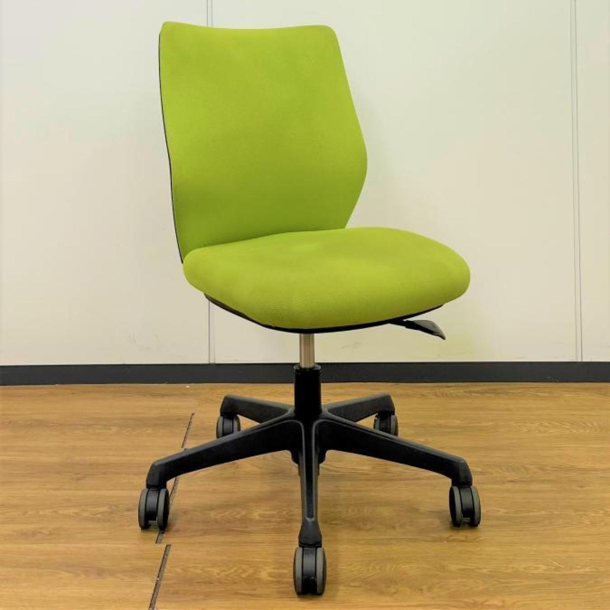 【在庫入替セール品】【やわらかな座り心地を実現!腰への負担を減らすS字形状!】■オカムラ(okamura)製 CG-Mチェア 肘無ローバックチェア パッド仕様 ■ライムグリーン【弊社使用欄:A01006389 K】