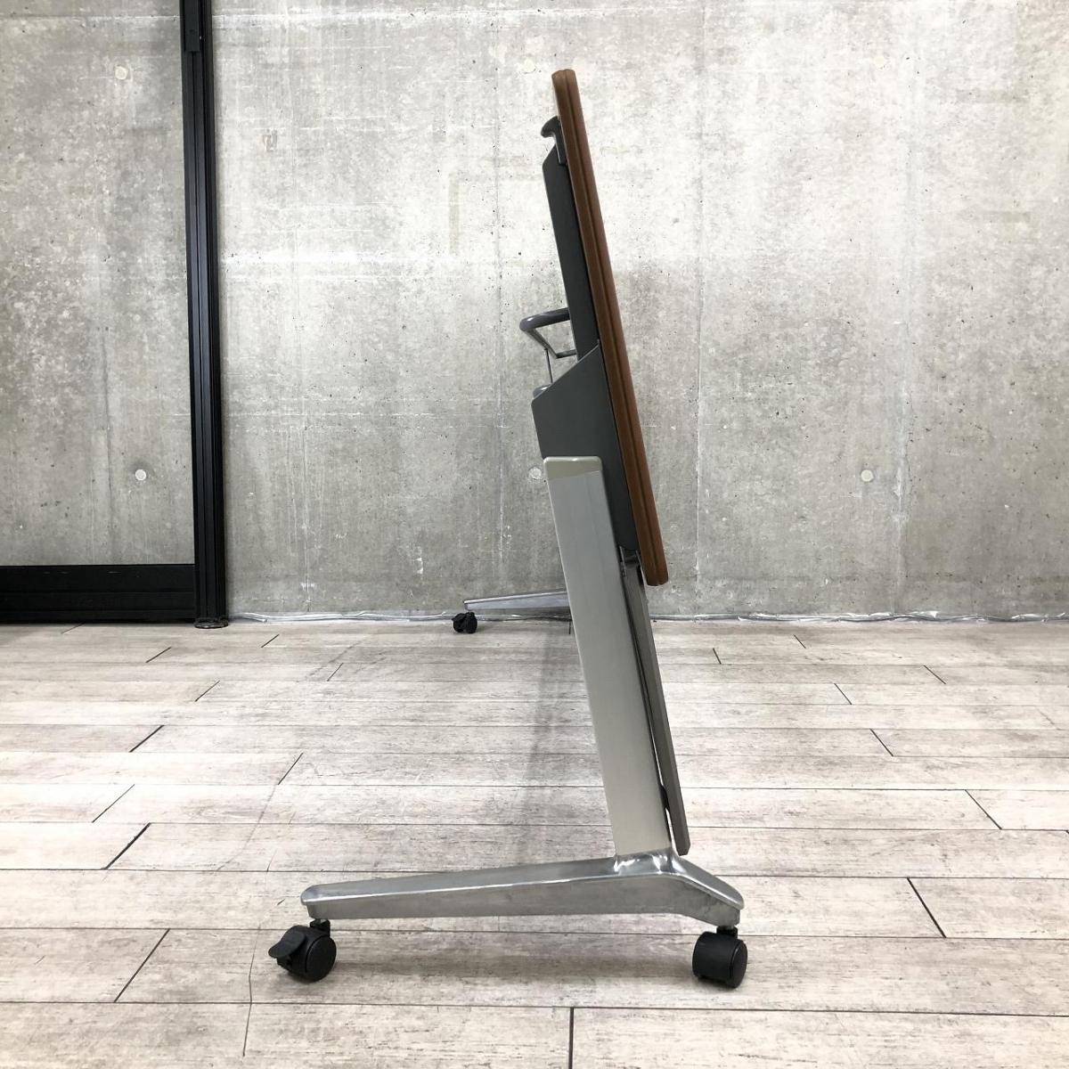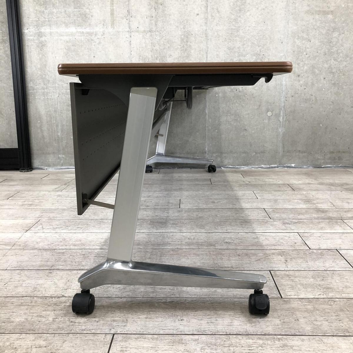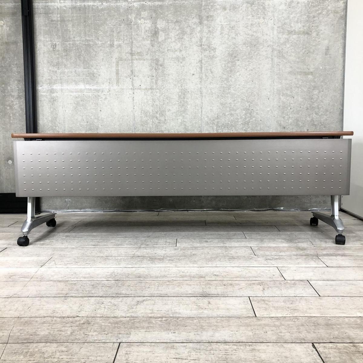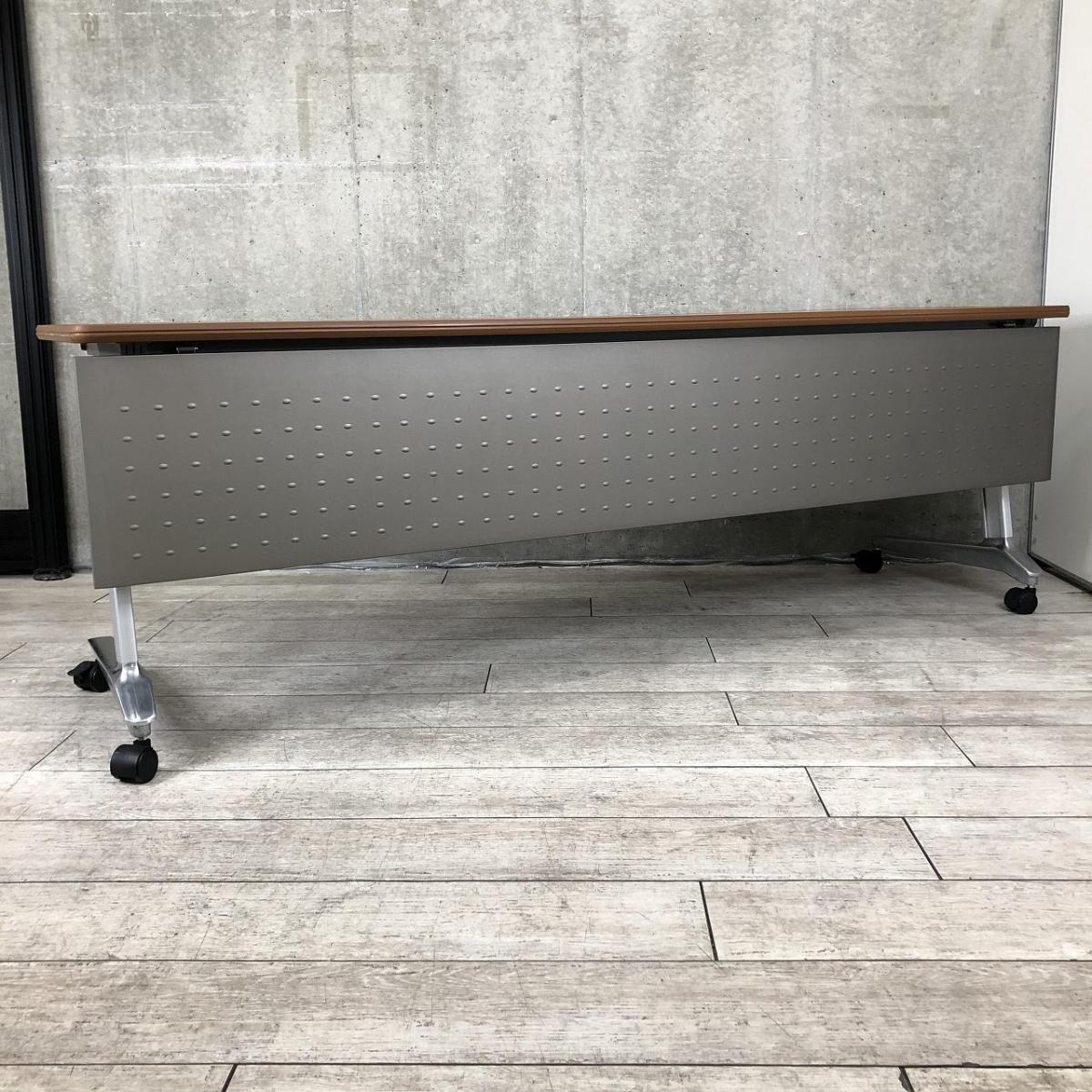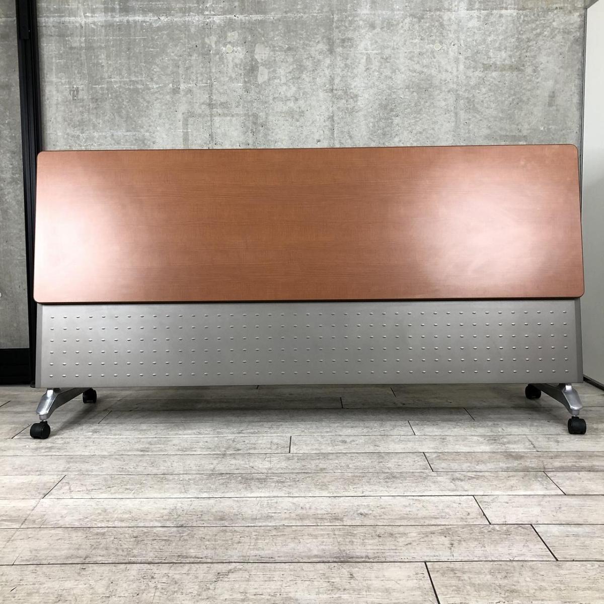 【3~4名様で使えるスタックテーブル入荷!奥行き600㎜で広々!キャスター付きで移動も楽々!】■ウチダ(UCHIDA)製 SAシリーズ サイドスタックテーブル ■幅2100×奥行600 ■幕板付き ■木目ダーク【天板跳ね上げ式でコンパクトに収納!】- 在庫数